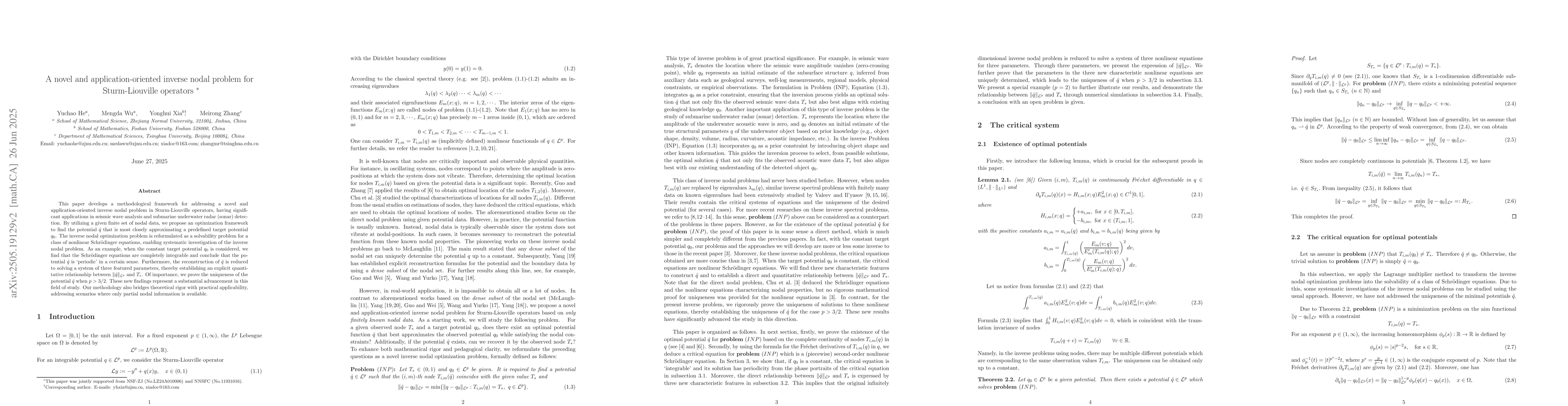 The paper presents an optimization framework for inverse nodal problems in Sturm-Liouville operators, reformulating it as a solvability problem of nonlinear Schrödinger equations using the Lagrange multiplier method.