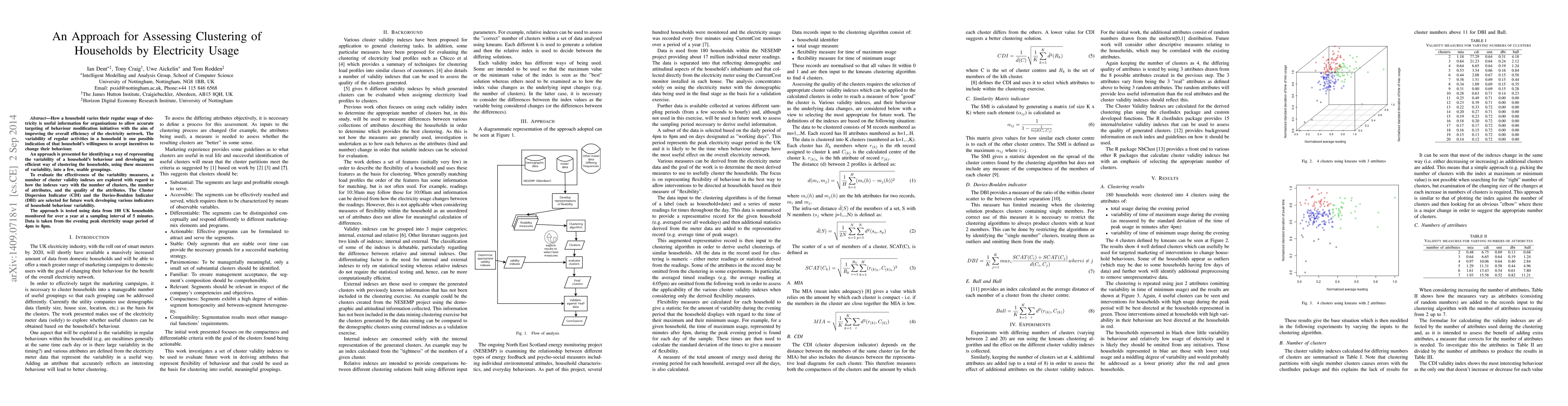 This paper proposes a method to cluster households based on their electricity usage variability, aiming to identify groups for targeted behavior modification initiatives. The study evaluates cluster validity indexes and selects the Cluster Dispersion Indicator (CDI) and Davies-Boulden Indicator (DBI) for further analysis, testing the approach on a dataset from 180 UK households.