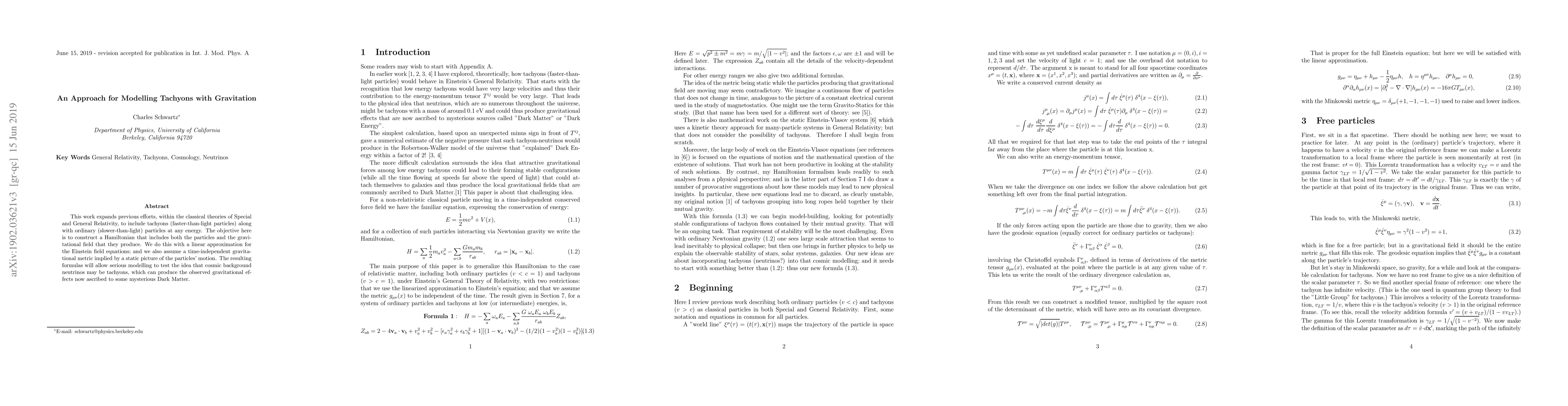 Researchers developed a new model that combines faster-than-light particles (tachyons) with gravity, potentially explaining cosmic background neutrinos' role in gravitational effects attributed to Dark Matter.