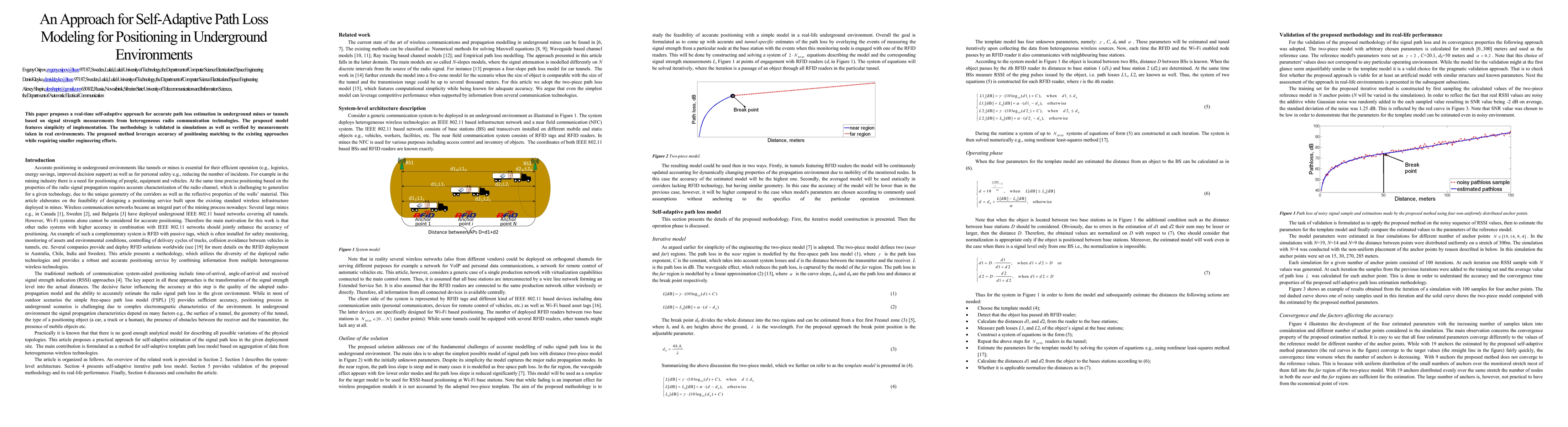 A self-adaptive path loss model was proposed for accurate positioning in underground environments using signal strength measurements from heterogeneous radio technologies. The method leverages existing accuracy while requiring smaller engineering efforts.