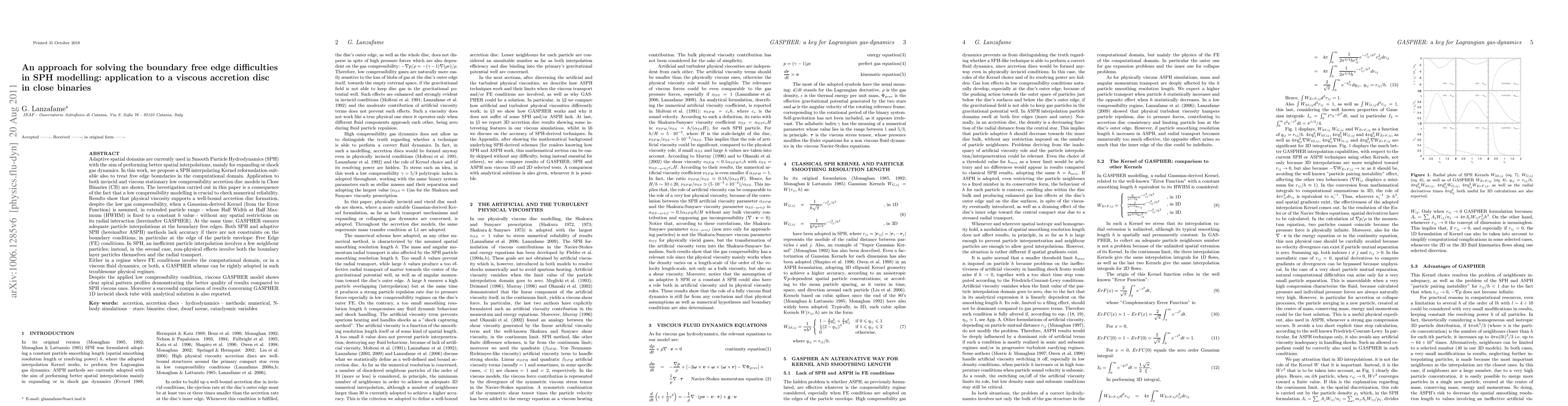 In this work, we propose a SPH interpolating Kernel reformulation suitable also to treat free edge boundaries in the computational domain. Application to both inviscid and viscous stationary low compressibility accretion disc models in Close Binaries (CB) are shown. The investigation carried out in this paper is a consequence of the fact that a low compressibility modelling is crucial to check numerical reliability. Results show that physical viscosity supports a well-bound accretion disc formation, despite the low gas compressibility, when a Gaussian-derived Kernel (from the Error Function) is assumed, in extended particle range - whose Half Width at Half Maximum (HWHM) is fixed to a constant $h$ value - without any spatial restrictions on its radial interaction (hereinafter GASPHER). At the same time, GASPHER ensures adequate particle interpolations at the boundary free edges. Both SPH and adaptive SPH (hereinafter ASPH) methods lack accuracy if there are not constraints on the boundary conditions, in particular at the edge of the particle envelope: Free Edge (FE) conditions. In SPH, an inefficient particle interpolation involves a few neighbour particles; instead, in the second case, non-physical effects involve both the boundary layer particles themselves and the radial transport. Either in a regime where FE conditions involve the computational domain, or in a viscous fluid dynamics, or both, a GASPHER scheme can be rightly adopted in such troublesome physical regimes. Despite the applied low compressibiity condition, viscous GASPHER model shows clear spiral pattern profiles demonstrating the better quality of results compared to SPH viscous ones. Moreover a successful comparison of results concerning GASPHER 1D inviscid shock tube with analytical solution is also reported.