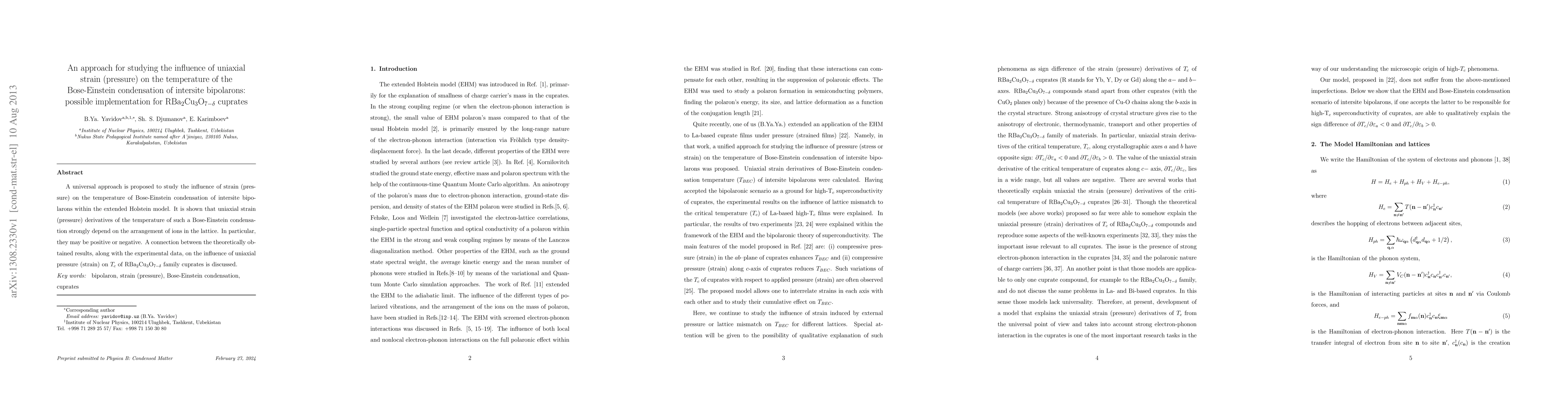 This paper proposes a universal approach to study how uniaxial strain affects the temperature of Bose-Einstein condensation of intersite bipolarons in cuprates, using the extended Holstein model. The results show that the effect of strain on condensation temperature can vary depending on the lattice's ion arrangement, and it discusses the implications for the $T_c$ of RBa$_2$Cu$_3$O$_{7-\delta}$ cuprates.