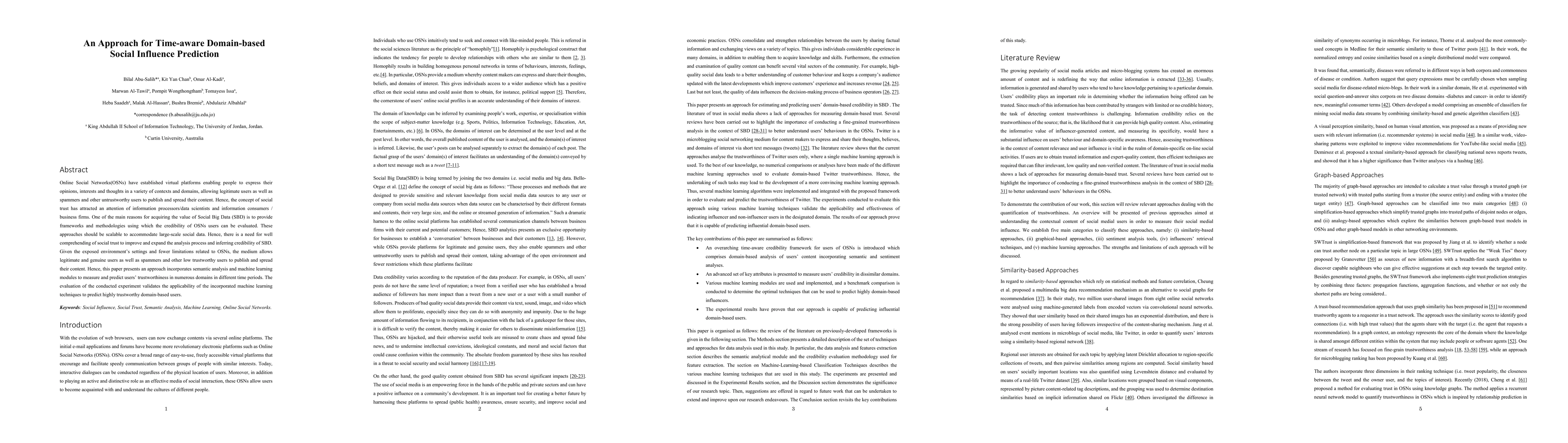Online Social Networks(OSNs) have established virtual platforms enabling people to express their opinions, interests and thoughts in a variety of contexts and domains, allowing legitimate users as well as spammers and other untrustworthy users to publish and spread their content. Hence, the concept of social trust has attracted the attention of information processors/data scientists and information consumers/business firms. One of the main reasons for acquiring the value of Social Big Data (SBD) is to provide frameworks and methodologies using which the credibility of OSNs users can be evaluated. These approaches should be scalable to accommodate large-scale social data. Hence, there is a need for well comprehending of social trust to improve and expand the analysis process and inferring the credibility of SBD. Given the exposed environment's settings and fewer limitations related to OSNs, the medium allows legitimate and genuine users as well as spammers and other low trustworthy users to publish and spread their content. Hence, this paper presents an approach incorporates semantic analysis and machine learning modules to measure and predict users' trustworthiness in numerous domains in different time periods. The evaluation of the conducted experiment validates the applicability of the incorporated machine learning techniques to predict highly trustworthy domain-based users.