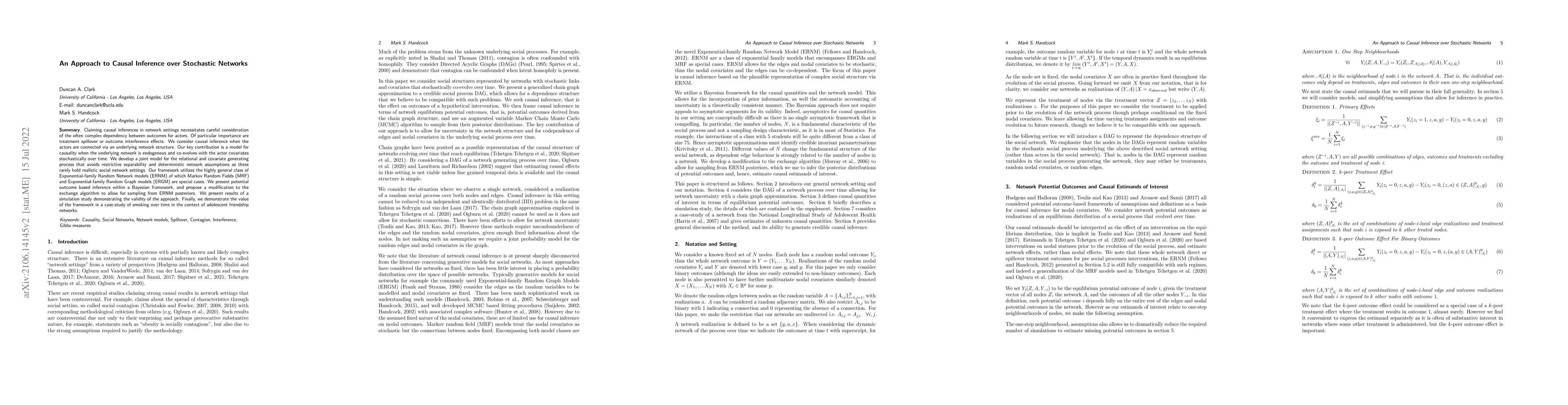 Claiming causal inferences in network settings necessitates careful consideration of the often complex dependency between outcomes for actors. Of particular importance are treatment spillover or outcome interference effects. We consider causal inference when the actors are connected via an underlying network structure. Our key contribution is a model for causality when the underlying network is unobserved and the actor covariates evolve stochastically over time. We develop a joint model for the relational and covariate generating process that avoids restrictive separability assumptions and deterministic network assumptions that do not hold in the majority of social network settings of interest. Our framework utilizes the highly general class of Exponential-family Random Network models (ERNM) of which Markov Random Fields (MRF) and Exponential-family Random Graph models (ERGM) are special cases. We present potential outcome based inference within a Bayesian framework, and propose a simple modification to the exchange algorithm to allow for sampling from ERNM posteriors. We present results of a simulation study demonstrating the validity of the approach. Finally, we demonstrate the value of the framework in a case-study of smoking over time in the context of adolescent friendship networks.