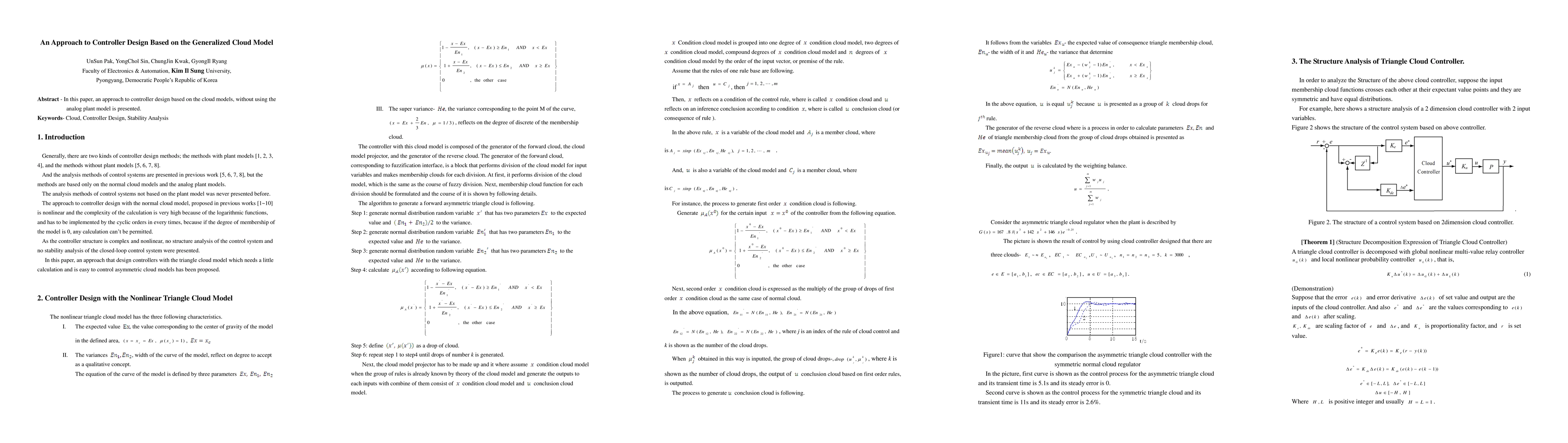 This paper presents an approach to controller design based on cloud models without using analog plant models. It provides a new method for designing controllers that can improve system performance and stability.