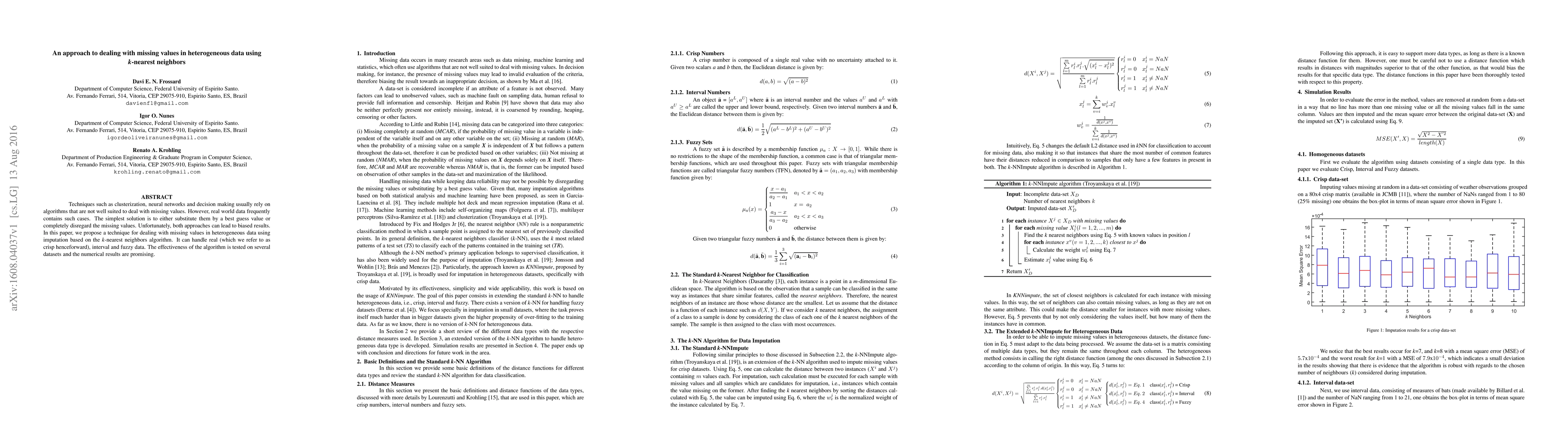 The paper introduces an adapted k-NN imputation algorithm capable of handling heterogeneous data types, including crisp, interval, and fuzzy data.