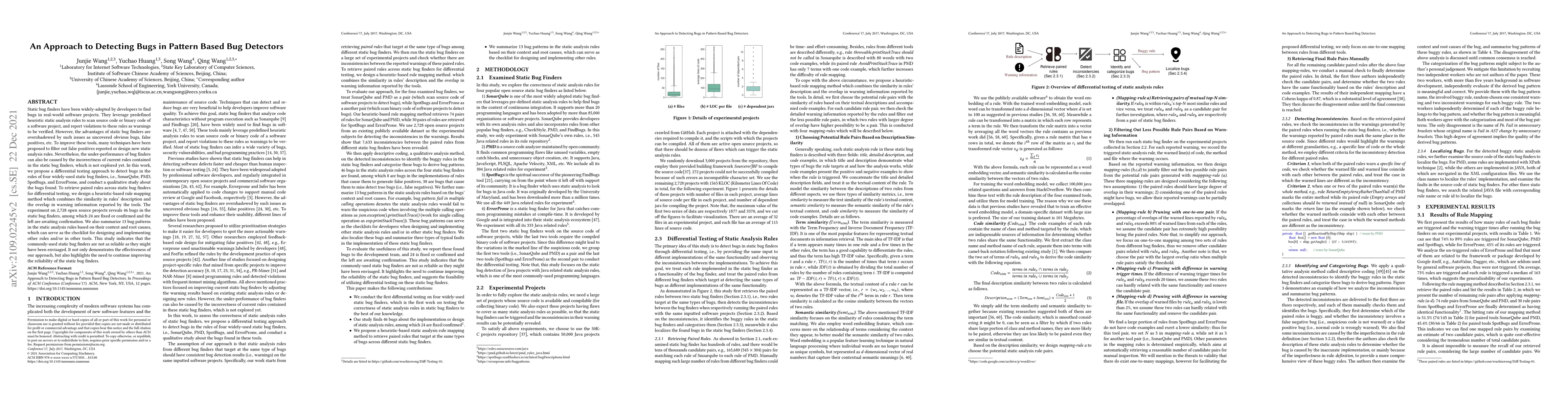 The research employs a differential testing approach to detect bugs in static analysis rules of four widely-used static bug finders: SonarQube, PMD, SpotBugs, and ErrorProne. A heuristic-based rule mapping method is designed to combine rule description similarity and warning information overlap for retrieving paired rules across tools.