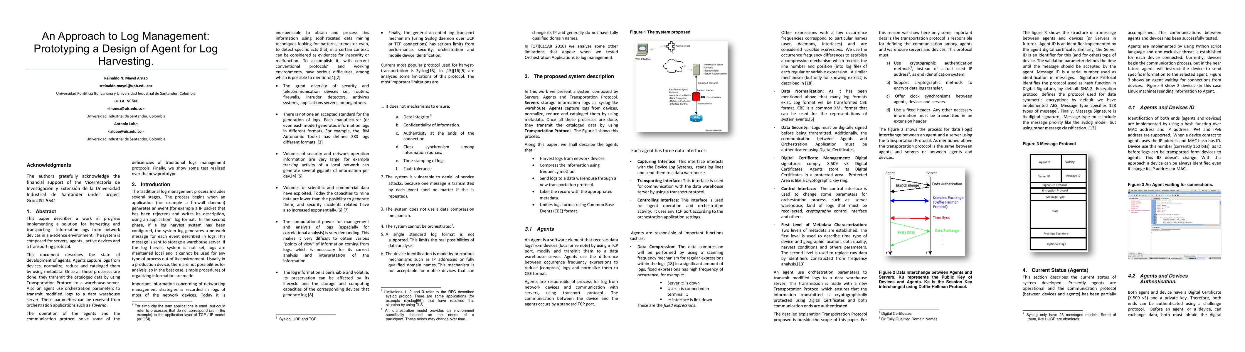 This paper describes a work in progress implementing a solution for harvesting and transporting information logs from network devices in a e-science environment. The system is composed for servers, agents, active devices and a transporting protocol. This document describes the state of development of agents. Agents capture logs from devices, normalize, reduce and cataloged them by using metadata. Once all these processes are done, they transmit the cataloged data by using Transportation Protocol to a warehouse server. Also an agent use orchestration parameters to transmit modified logs to a data warehouse server. These parameters can be received from orchestration applications such as Taverna. The operation of the agents and the communication protocol solve some of the deficiencies of traditional logs management protocols. Finally, we show some test realized over the new prototype.