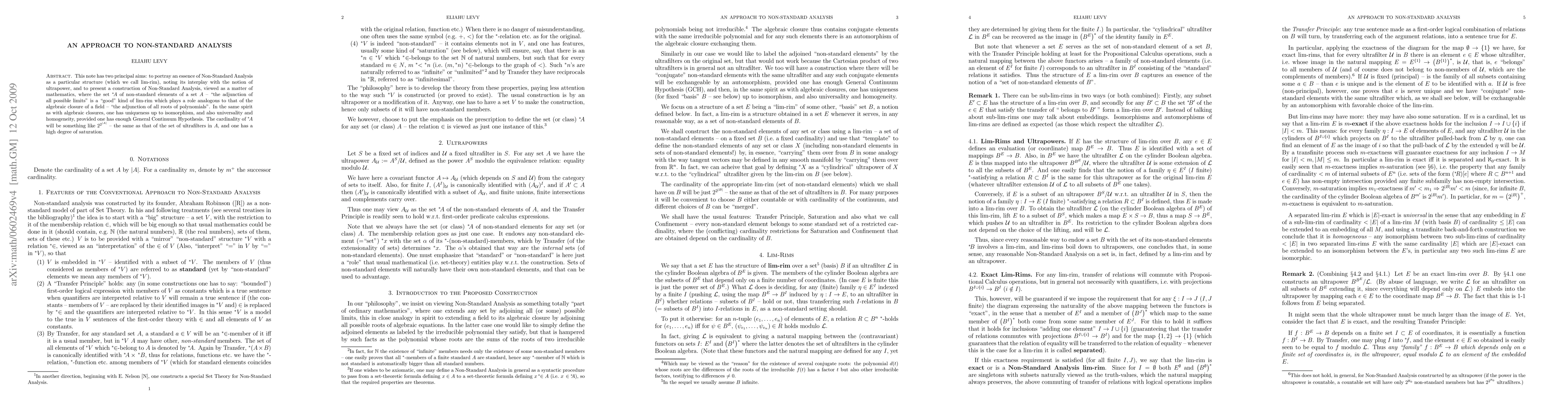 This note has two principal aims: to portray an essence of Non-Standard Analysis as a particular structure (which we call lim-rim), noting its interplay with the notion of ultrapower, and to present a construction of Non-Standard Analysis, viewed as a matter of mathematics, where the set *A of non-standard elements of a set A - "the adjunction of all possible limits" is a "good" kind of lim-rim which plays a role analogous to the algebraic closure of a field - "the adjunction of all roots of polynomials". In the same spirit as with algebraic closures, one has uniqueness up to isomorphism, and also universality and homogeneity, provided one has enough Generalized Continuum Hypothesis. The cardinality of *A will be just something like 2^(2^|A|), and one has a high degree of saturation.