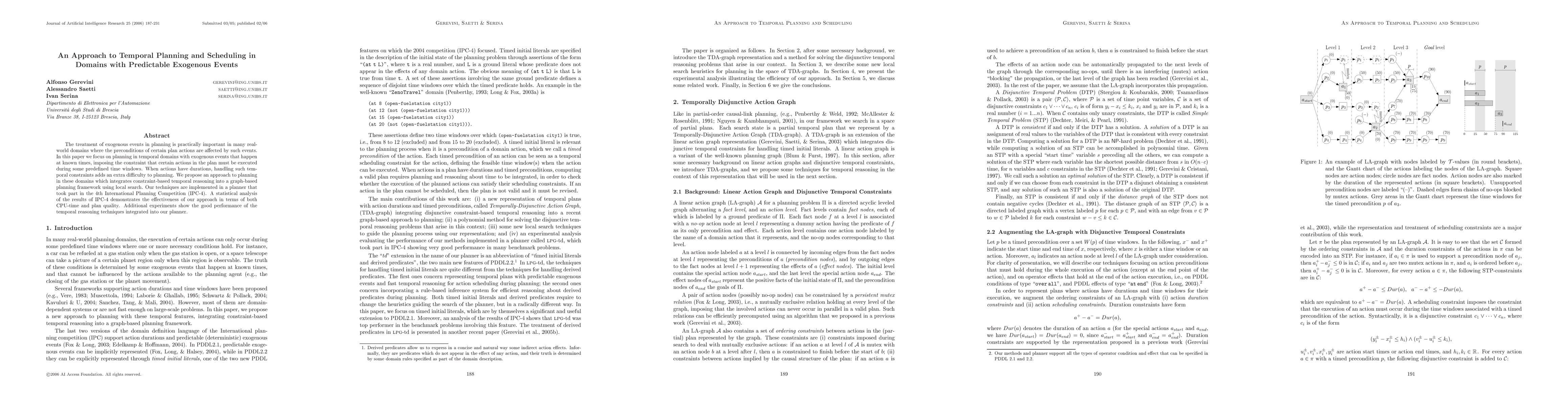 This paper proposes an approach for temporal planning in domains with predictable exogenous events, integrating constraint-based reasoning into a graph-based planning framework using local search. The planner's effectiveness is demonstrated through participation in the IPC-4 competition and statistical analysis showing improved CPU-time and plan quality.