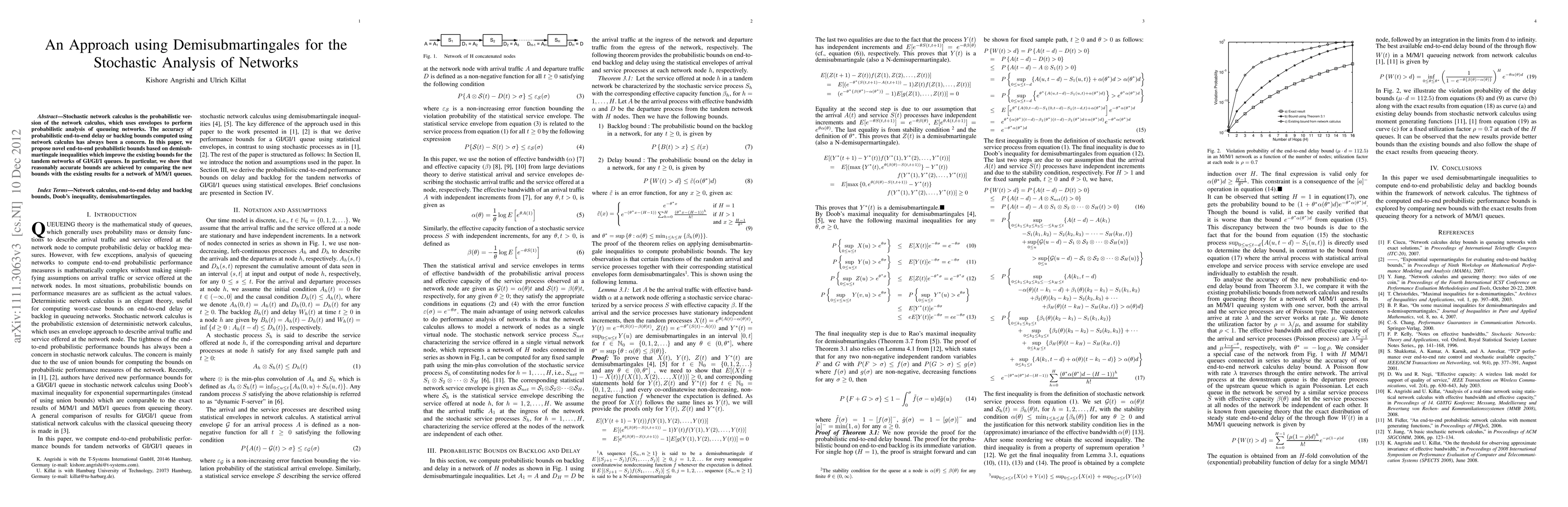 This paper introduces novel probabilistic bounds for analyzing queueing networks using demisubmartingale inequalities, which enhance existing methods for tandem GI/GI/1 queues. The proposed approach provides more accurate end-to-end delay or backlog estimates compared to traditional techniques, as demonstrated through comparisons with M/M/1 queue networks.