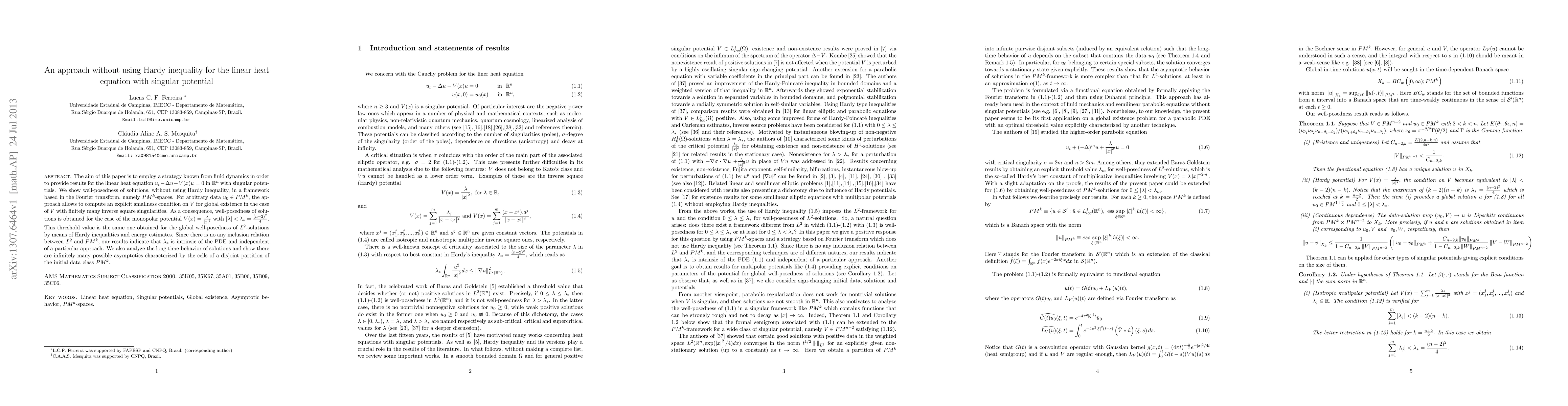 The aim of this paper is to employ a strategy known from fluid dynamics in order to provide results for the linear heat equation $u_{t}-\Delta u-V(x)u=0$ in $\mathbb{R}^{n}$ with singular potentials. We show well-posedness of solutions, without using Hardy inequality, in a framework based in the Fourier transform, namely $PM^{k}$-spaces. For arbitrary data $u_{0}\in PM^{k}$, the approach allows to compute an explicit smallness condition on $V$ for global existence in the case of $V$ with finitely many inverse square singularities. As a consequence, well-posedness of solutions is obtained for the case of the monopolar potential $V(x)=\frac{\lambda}{\left|x\right|^{2}}$ with $\left|\lambda\right|<\lambda_{\ast}=\frac{(n-2)^{2}}{4}$. This threshold value is the same one obtained for the global well-posedness of $L^{2}$-solutions by means of Hardy inequalities and energy estimates. Since there is no any inclusion relation between $L^{2}$ and $PM^{k}$, our results indicate that $\lambda_{\ast}$ is intrinsic of the PDE and independent of a particular approach. We also analyze the long time behavior of solutions and show there are infinitely many possible asymptotics characterized by the cells of a disjoint partition of the initial data class $PM^{k}$.