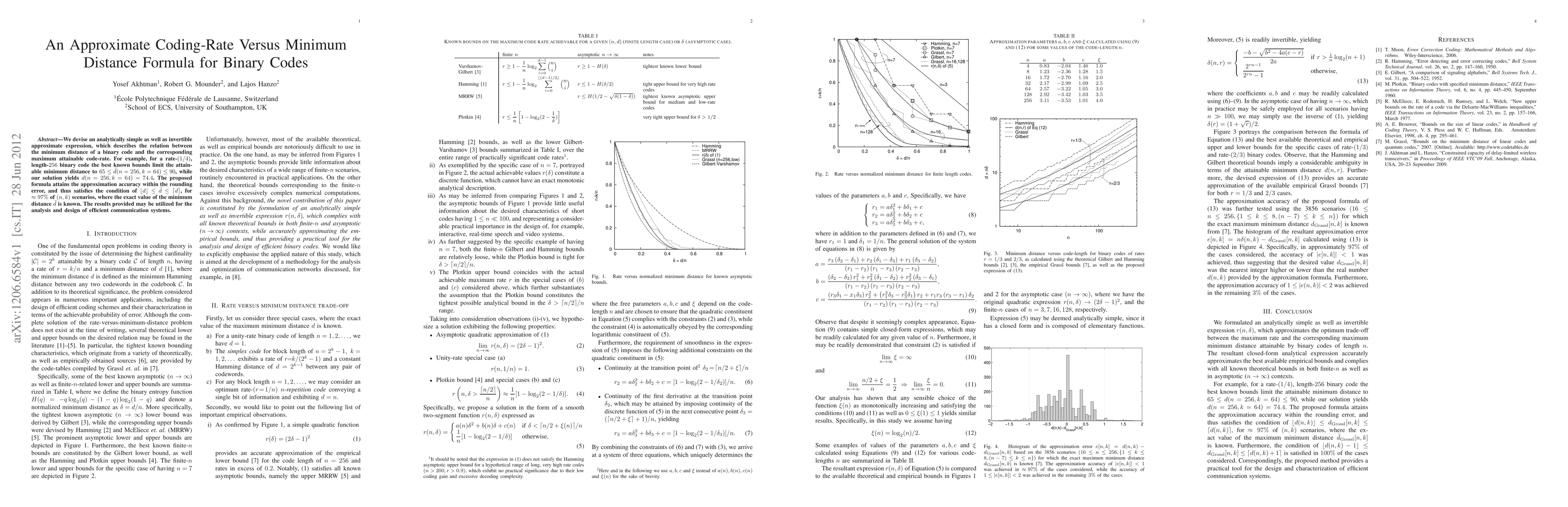 This paper proposes an approximate formula to relate the minimum distance and maximum coding rate of binary codes, achieving high accuracy for most scenarios. The formula provides a more precise estimate than known bounds, aiding in the analysis and design of communication systems.