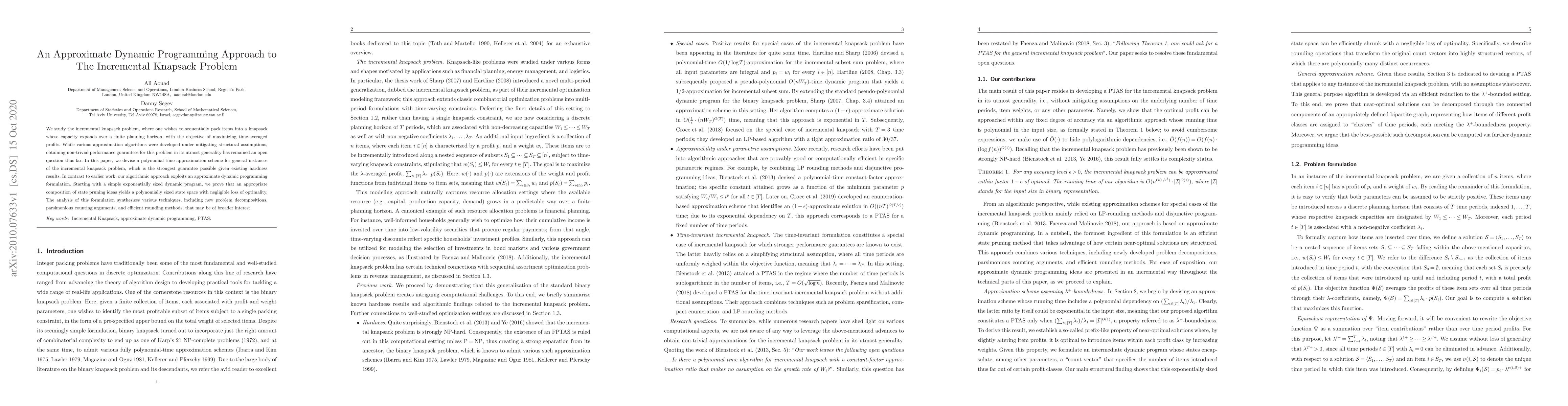 This paper presents a polynomial-time approximation scheme for the incremental knapsack problem using an approximate dynamic programming approach. It achieves strong performance guarantees by effectively pruning the state space, synthesizing various techniques for broader applicability.