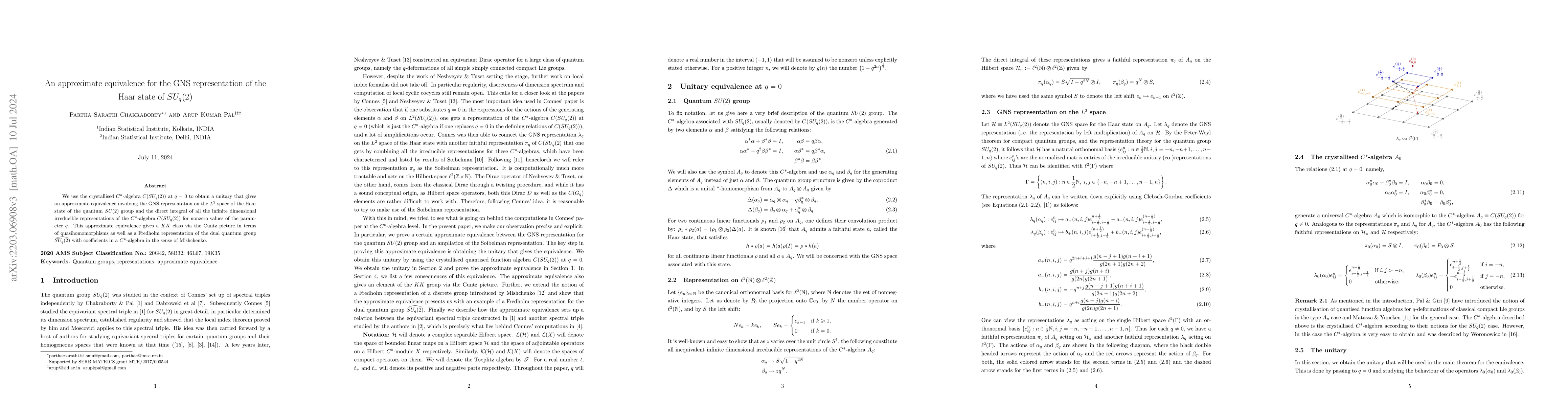 This paper establishes an approximate equivalence between the GNS representation of the Haar state on $SU_{q}(2)$ and the direct integral of its infinite-dimensional irreducible representations, leading to a Fredholm representation of the dual quantum group and a KK class via quasihomomorphisms.