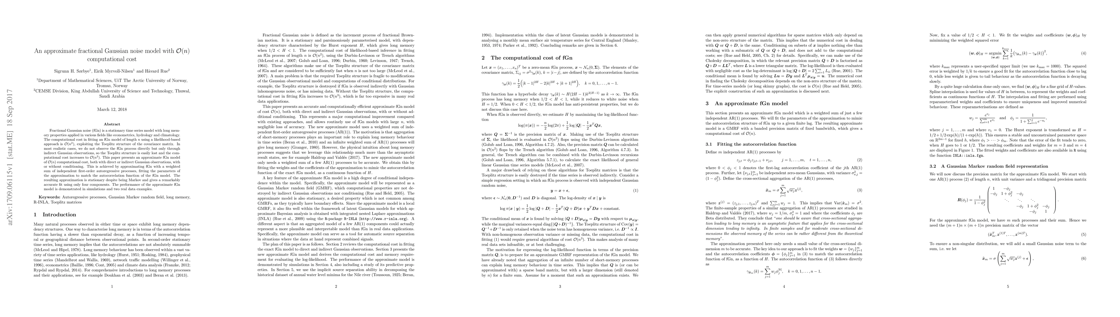 Researchers created an approximate fractional Gaussian noise model with lower computational cost that accurately fits long memory time series data, offering a promising alternative to existing models.