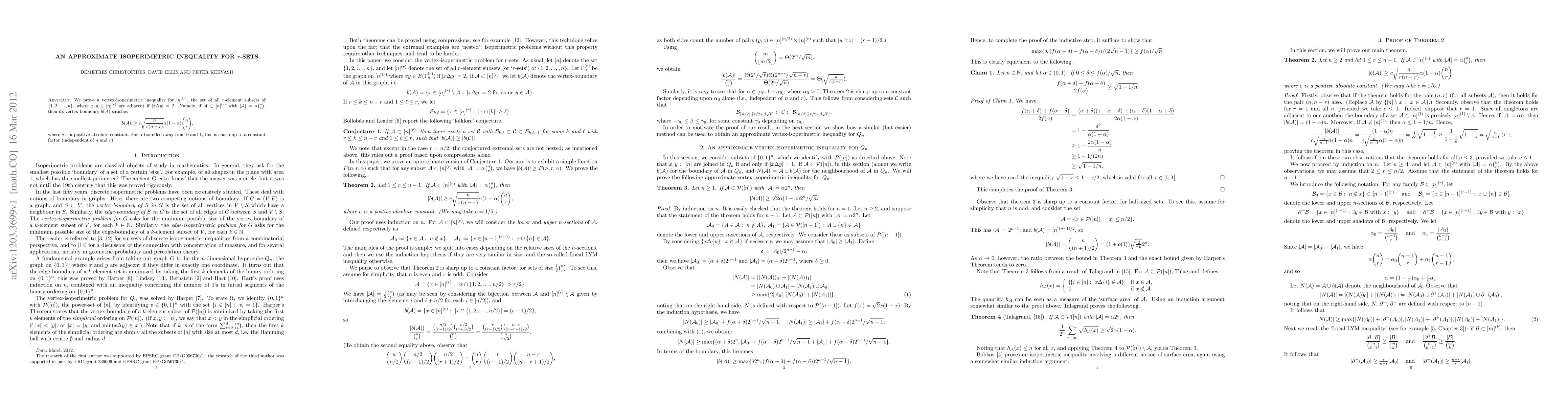 We prove a vertex-isoperimetric inequality for [n]^(r), the set of all r-element subsets of {1,2,...,n}, where x,y \in [n]^(r) are adjacent if |x \Delta y|=2. Namely, if \mathcal{A} \subset [n]^(r) with |\mathcal{A}|=\alpha {n \choose r}, then the vertex-boundary b(\mathcal{A}) satisfies |b(\mathcal{A})| \geq c\sqrt{\frac{n}{r(n-r)}} \alpha(1-\alpha) {n \choose r}, where c is a positive absolute constant. For \alpha bounded away from 0 and 1, this is sharp up to a constant factor (independent of n and r).