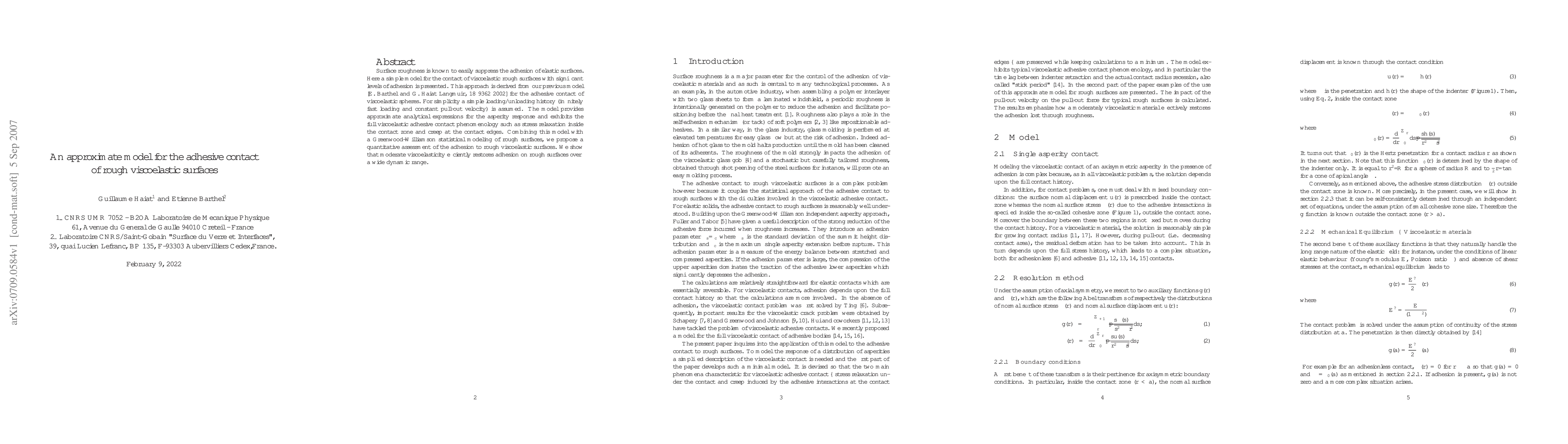 This paper presents an approximate analytical model for the adhesive contact of rough viscoelastic surfaces, extending previous models for viscoelastic spheres. It demonstrates that moderate viscoelasticity can restore adhesion on rough surfaces, combining viscoelastic contact theory with a statistical model of surface roughness.
