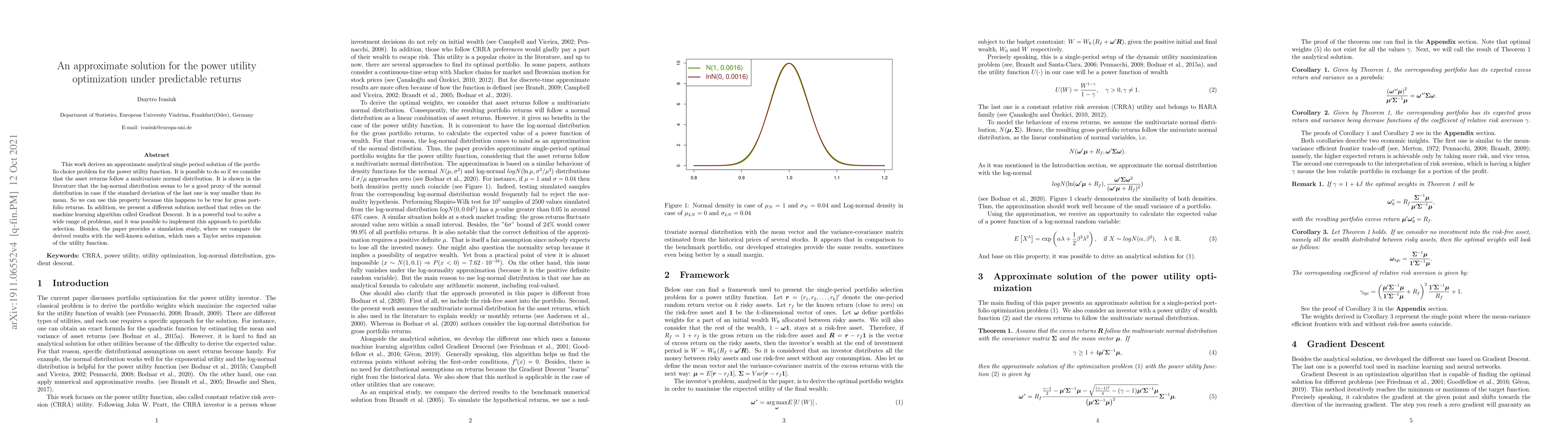 Researchers developed an approximate solution for optimizing power utility portfolios using a multivariate normal distribution, with a focus on machine learning algorithm Gradient Descent.