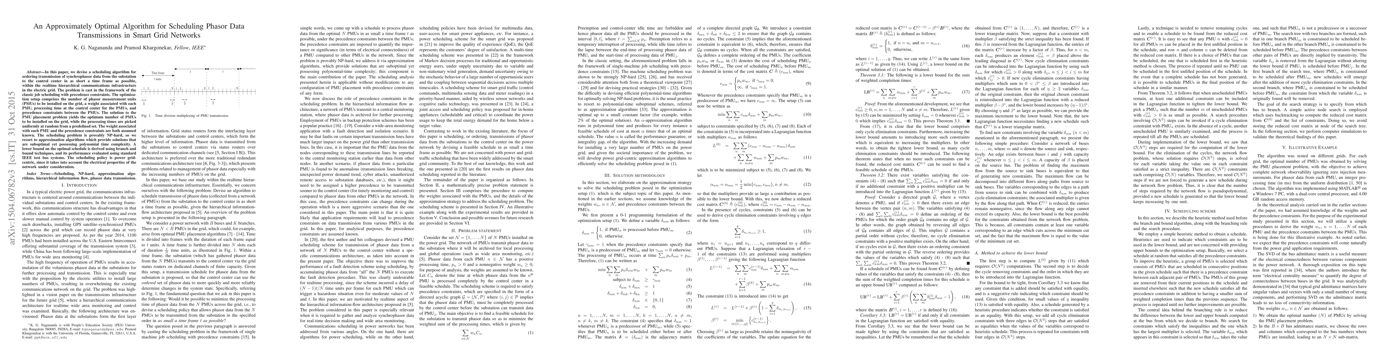 This paper proposes an algorithm to schedule phasor data transmissions in smart grids as efficiently as possible, using approximation algorithms that provide solutions with polynomial time complexity. The results show the algorithm's effectiveness in optimizing phasor data transmission schedules.