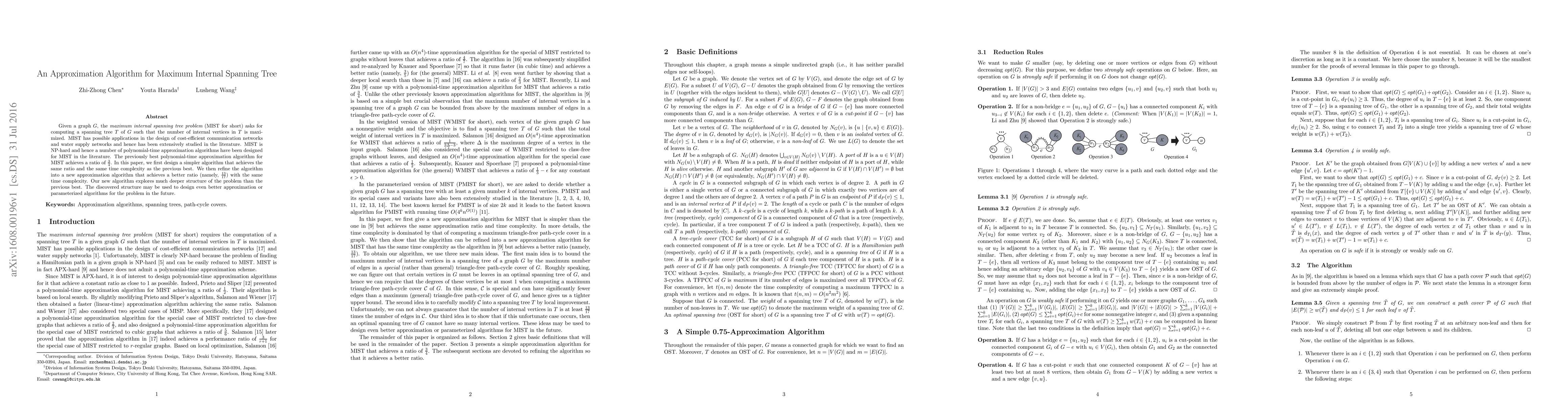 Given a graph G, the {\em maximum internal spanning tree problem} (MIST for short) asks for computing a spanning tree T of G such that the number of internal vertices in T is maximized. MIST has possible applications in the design of cost-efficient communication networks and water supply networks and hence has been extensively studied in the literature. MIST is NP-hard and hence a number of polynomial-time approximation algorithms have been designed for MIST in the literature. The previously best polynomial-time approximation algorithm for MIST achieves a ratio of 3/4. In this paper, we first design a simpler algorithm that achieves the same ratio and the same time complexity as the previous best. We then refine the algorithm into a new approximation algorithm that achieves a better ratio (namely, 13/17) with the same time complexity. Our new algorithm explores much deeper structure of the problem than the previous best. The discovered structure may be used to design even better approximation or parameterized algorithms for the problem in the future.