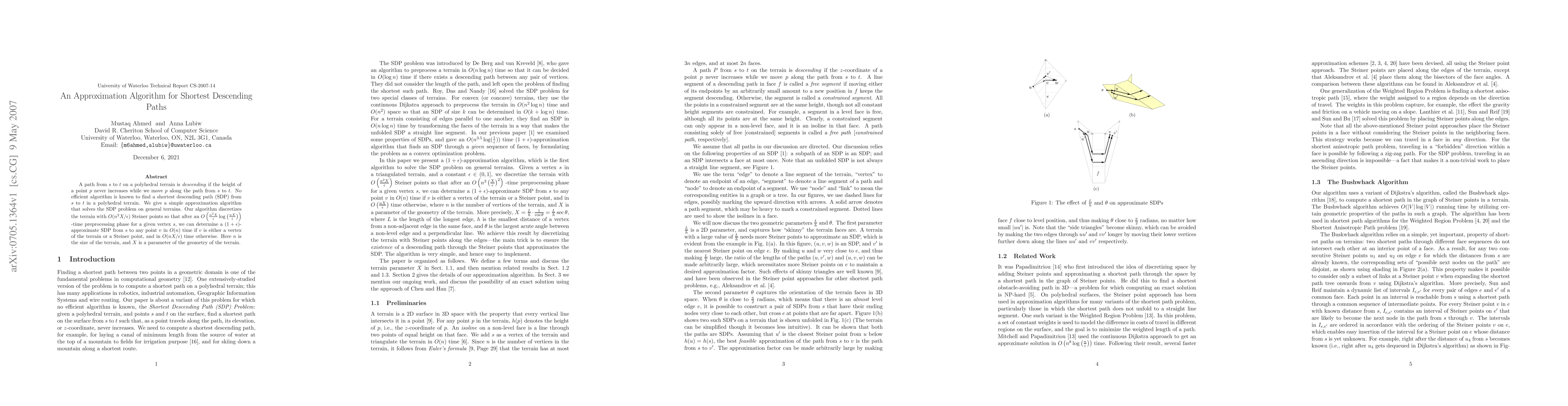 A path from s to t on a polyhedral terrain is descending if the height of a point p never increases while we move p along the path from s to t. No efficient algorithm is known to find a shortest descending path (SDP) from s to t in a polyhedral terrain. We give a simple approximation algorithm that solves the SDP problem on general terrains. Our algorithm discretizes the terrain with O(n^2 X / e) Steiner points so that after an O(n^2 X / e * log(n X /e))-time preprocessing phase for a given vertex s, we can determine a (1+e)-approximate SDP from s to any point v in O(n) time if v is either a vertex of the terrain or a Steiner point, and in O(n X /e) time otherwise. Here n is the size of the terrain, and X is a parameter of the geometry of the terrain.
