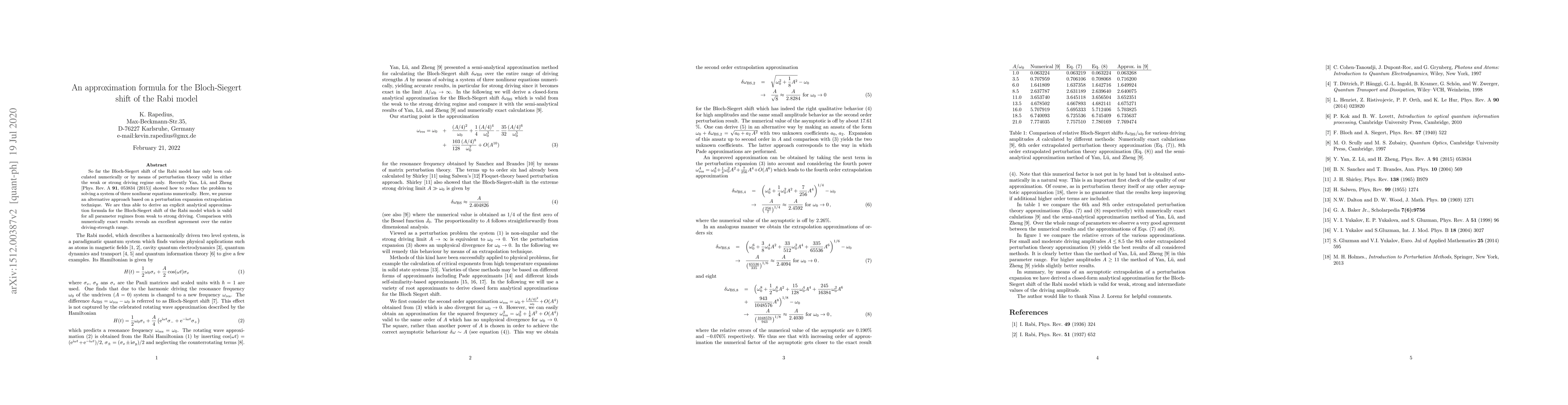 This paper develops an analytical approximation formula for the Bloch-Siegert shift in the Rabi model using a perturbation expansion extrapolation technique. This method provides an accurate formula valid across all driving regimes, showing excellent agreement with numerically exact results.