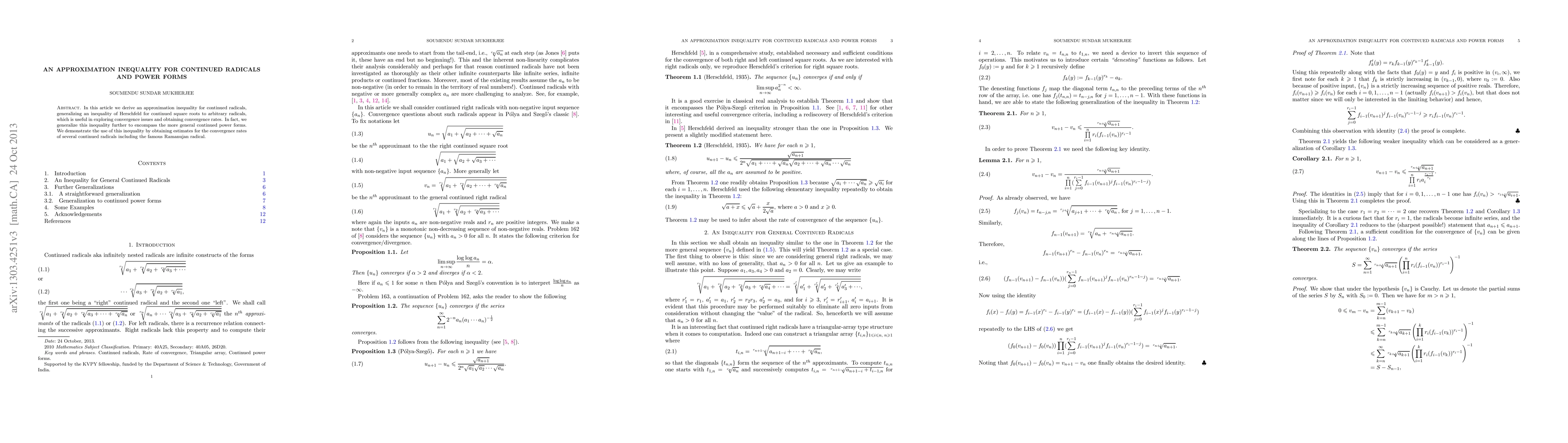In this article we derive an approximation inequality for continued radicals, generalizing an inequality of Herschfeld for continued square roots to arbitrary radicals, which is useful in exploring convergence issues and obtaining convergence rates. In fact, we generalize this inequality further to encompass the more general continued power forms. We demonstrate the use of this inequality by obtaining estimates for the convergence rates of several continued radicals including the famous Ramanujan radical.