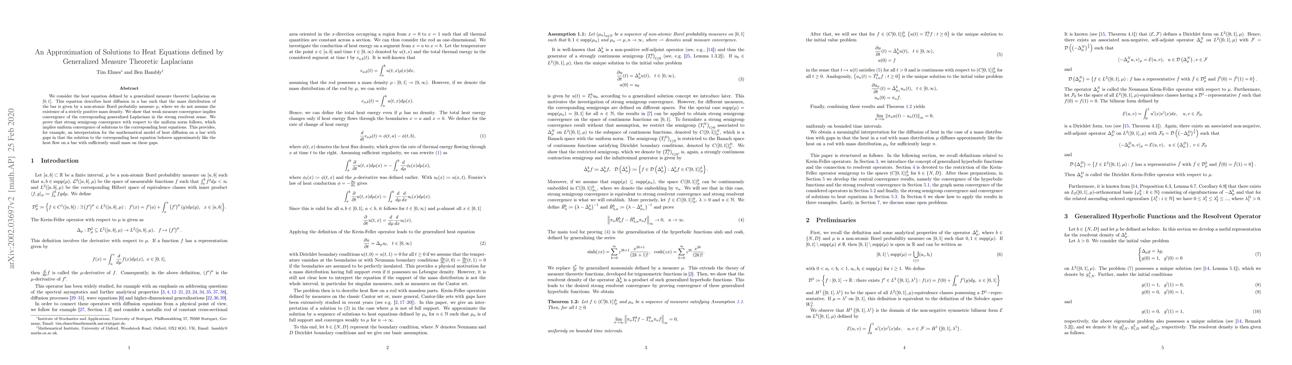 Researchers show that convergence of heat equations defined by generalized measure theoretic Laplacians leads to uniform convergence of solutions, providing a mathematical model for heat diffusion on bars with gaps.