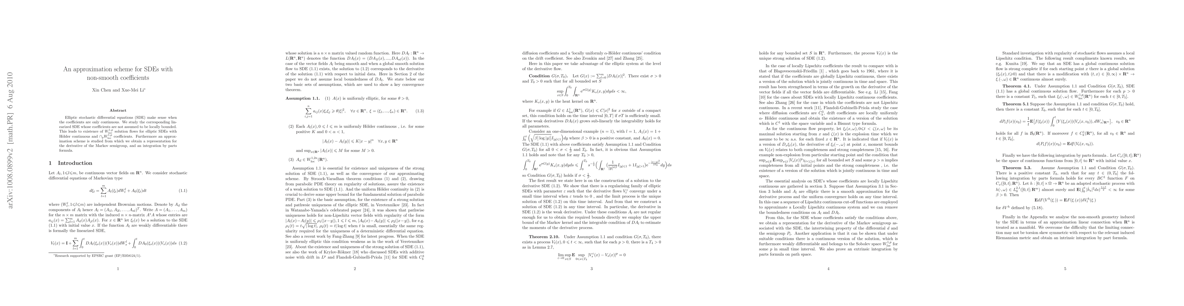 This paper develops an approximation scheme for elliptic stochastic differential equations (SDEs) with non-smooth coefficients, proving the existence of $W_{\loc}^{1,p}$ solution flows and deriving a representation for the derivative of the Markov semigroup, along with an integration by parts formula.
