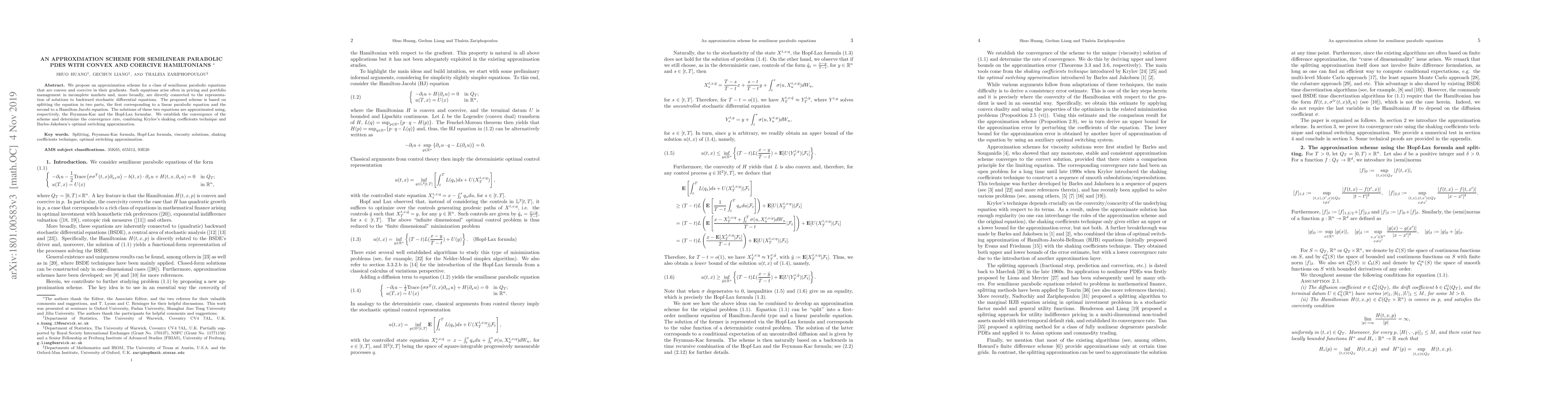 This paper introduces an approximation scheme for semilinear parabolic PDEs that are convex and coercive, relevant in financial modeling and backward stochastic differential equations. The scheme splits the equation into linear and Hamilton-Jacobi parts, using Feynman-Kac and Hopf-Lax formulae for approximations, and establishes its convergence with a determined rate.