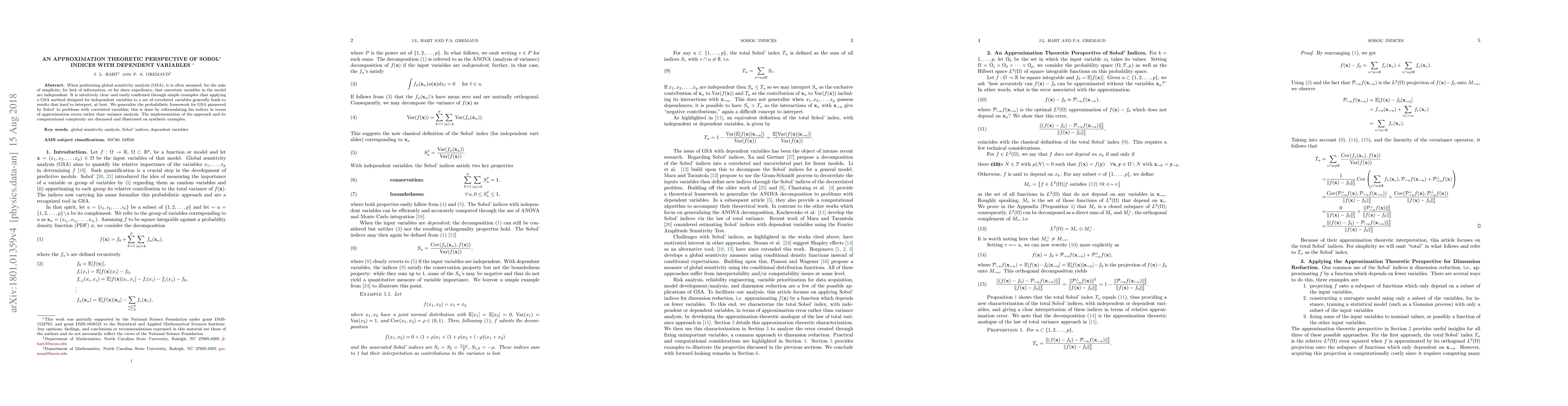 This paper develops an approximation theoretic approach to interpret Sobol' indices for models with dependent variables, enhancing their utility in global sensitivity analysis. The proposed perspective is demonstrated through its application in dimension reduction, supported by theoretical analysis and examples.