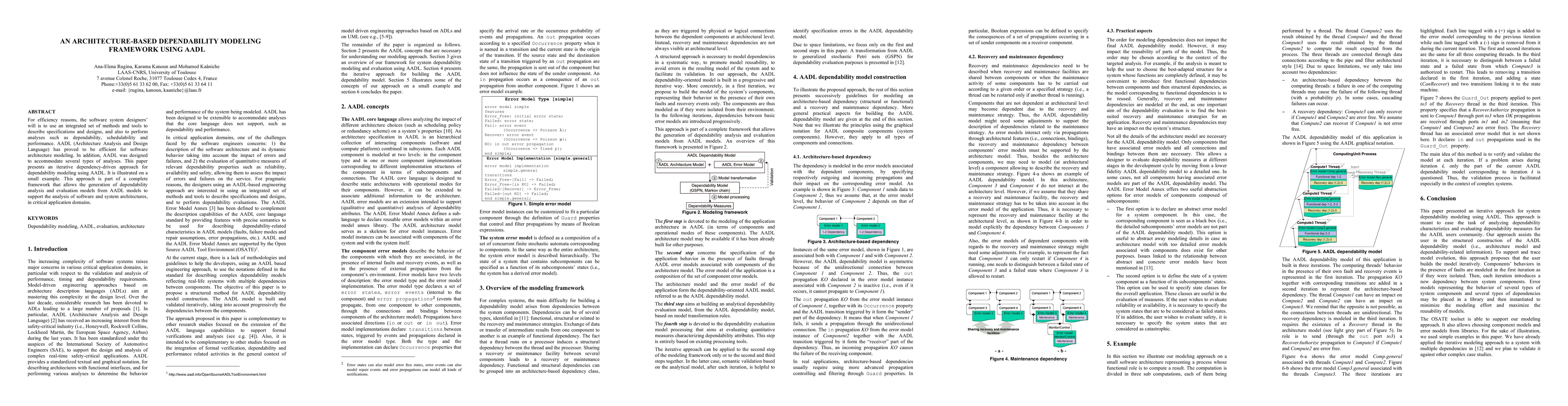 This paper introduces an iterative, dependency-driven dependability modeling framework using AADL for software architecture analysis, enabling the generation of dependability analysis models from AADL specifications to support critical application domains. The approach is demonstrated through a small example.