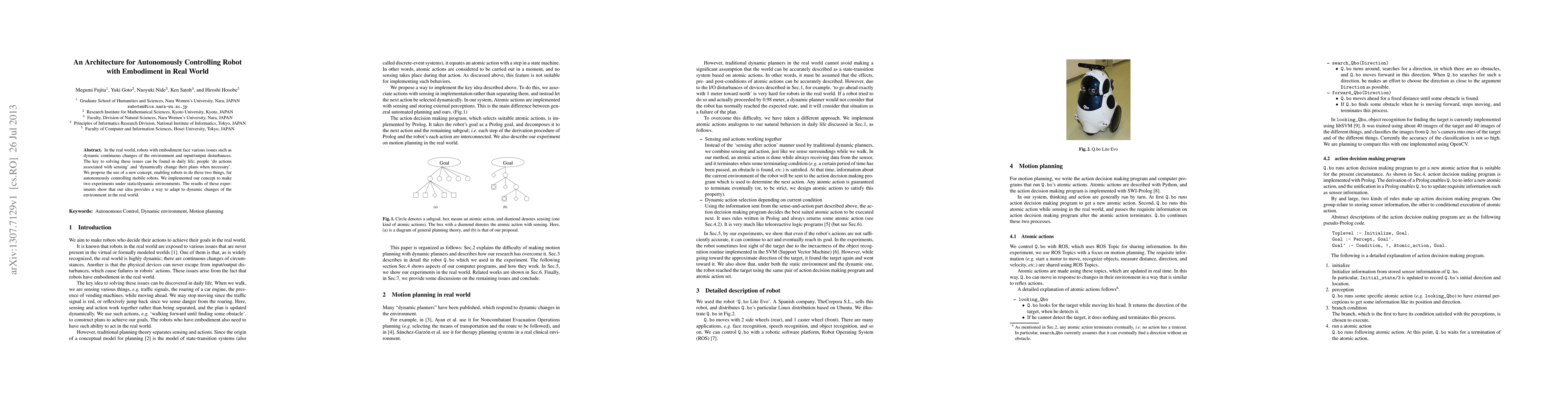 In the real world, robots with embodiment face various issues such as dynamic continuous changes of the environment and input/output disturbances. The key to solving these issues can be found in daily life; people `do actions associated with sensing' and `dynamically change their plans when necessary'. We propose the use of a new concept, enabling robots to do these two things, for autonomously controlling mobile robots. We implemented our concept to make two experiments under static/dynamic environments. The results of these experiments show that our idea provides a way to adapt to dynamic changes of the environment in the real world.