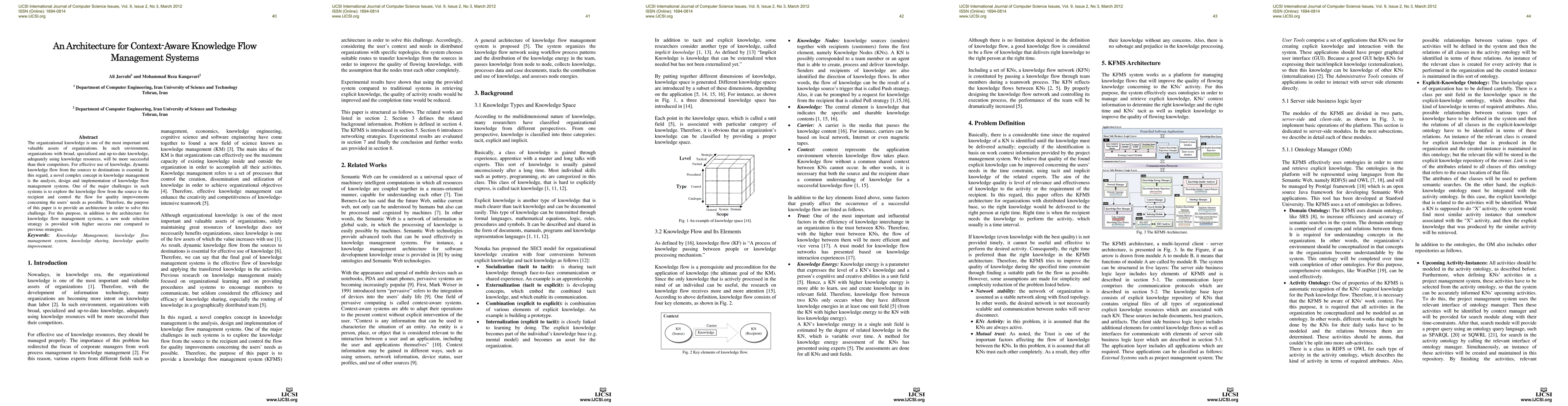 This paper proposes an architecture for context-aware knowledge flow management systems to enhance the dynamic and effective use of organizational knowledge. It introduces a novel node selection strategy to improve the success rate in managing knowledge flows to meet user needs.