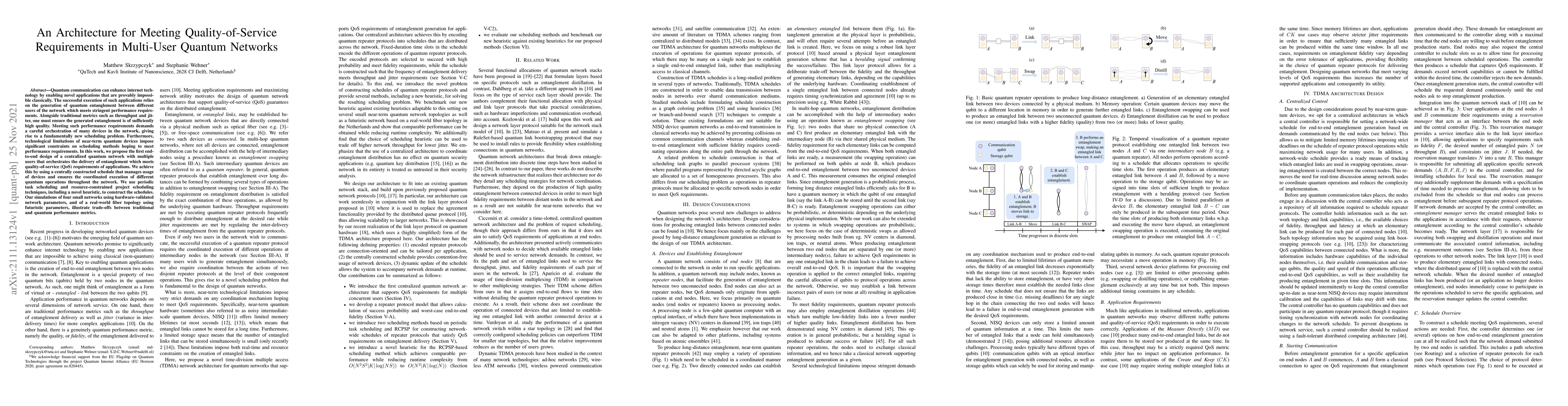 A new design for a centralized quantum network ensures high-quality entanglement delivery meeting performance requirements, using novel scheduling techniques to optimize traditional metrics such as throughput and jitter.