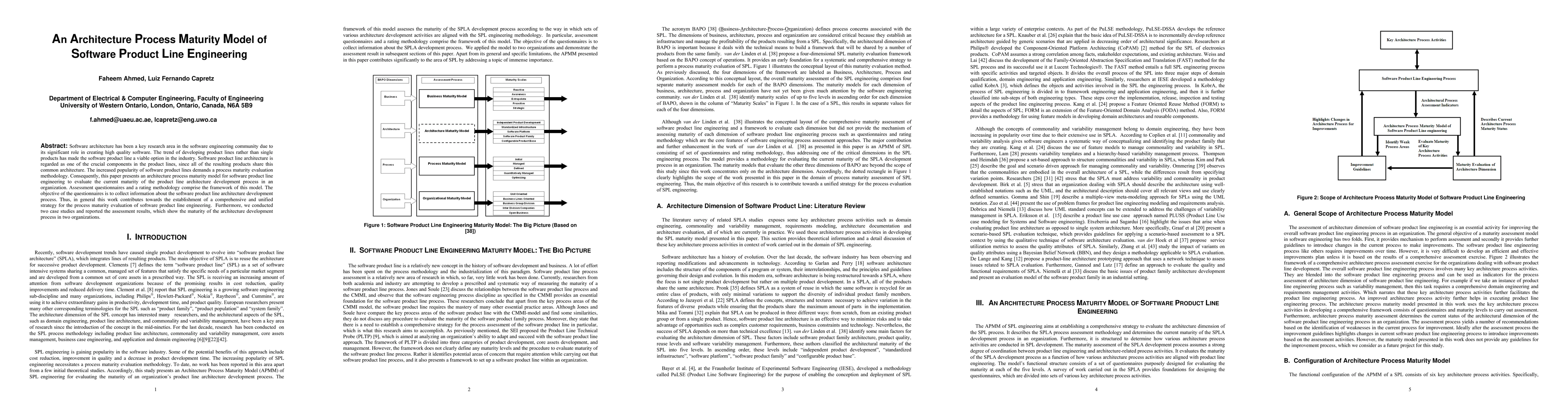 This paper introduces a maturity model for evaluating the architecture development process in software product line engineering, utilizing assessment questionnaires and a rating methodology. The model aims to provide a comprehensive strategy for assessing the maturity of product line architecture development processes, supported by case study results from two organizations.