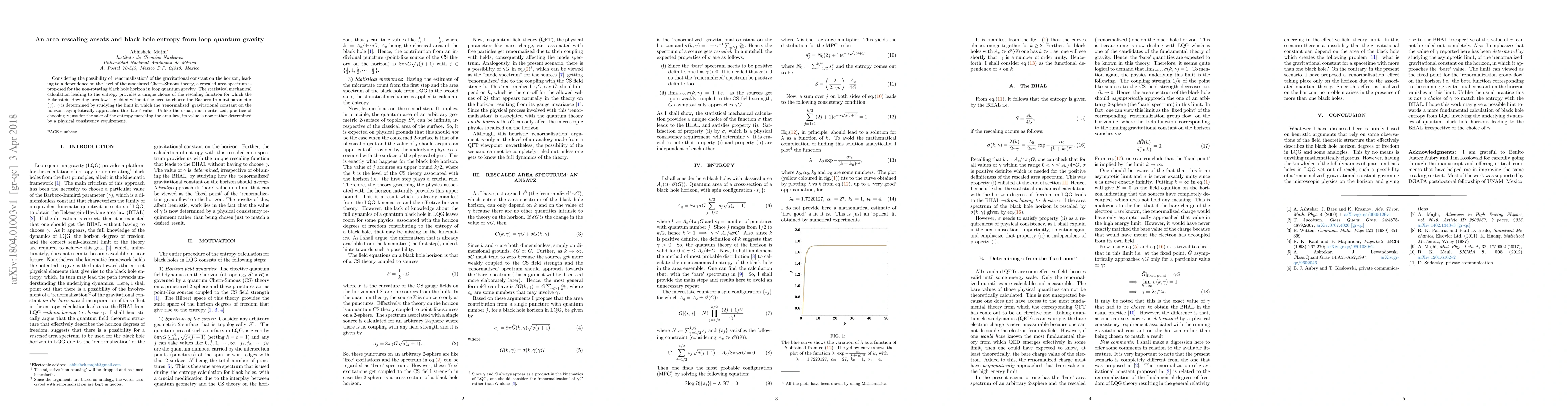 This paper proposes an area rescaling ansatz in loop quantum gravity to derive black hole entropy, yielding the Bekenstein-Hawking area law without choosing the Barbero-Immirzi parameter. The gravitational constant's renormalization on the horizon determines the parameter, ensuring physical consistency.