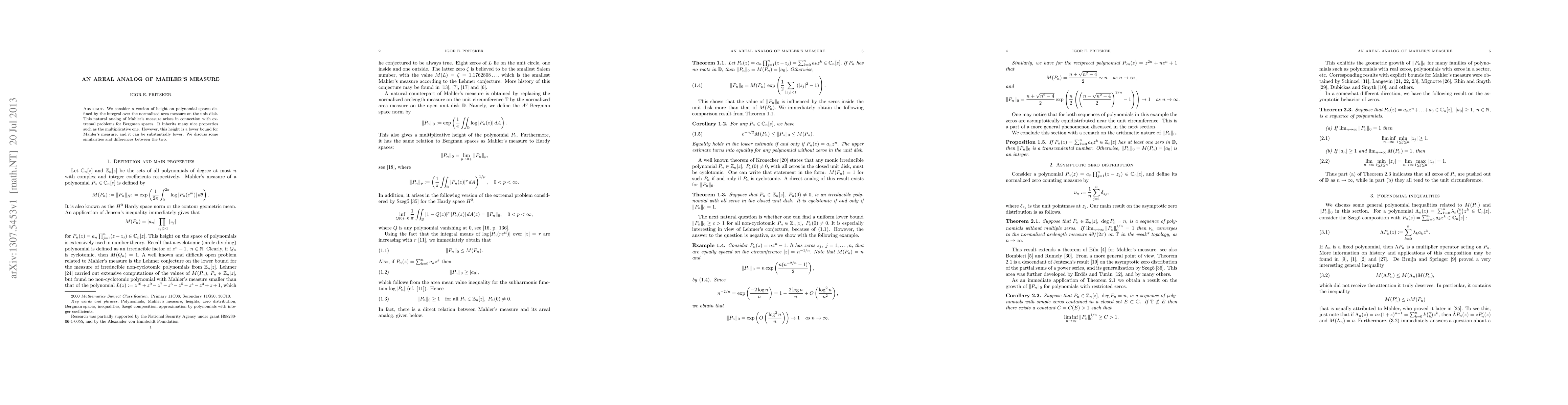 Researchers introduce a new measure of polynomial complexity inspired by Mahler's measure, which is often lower but still inherits multiplicative properties, with implications for extremal problems in Bergman spaces.