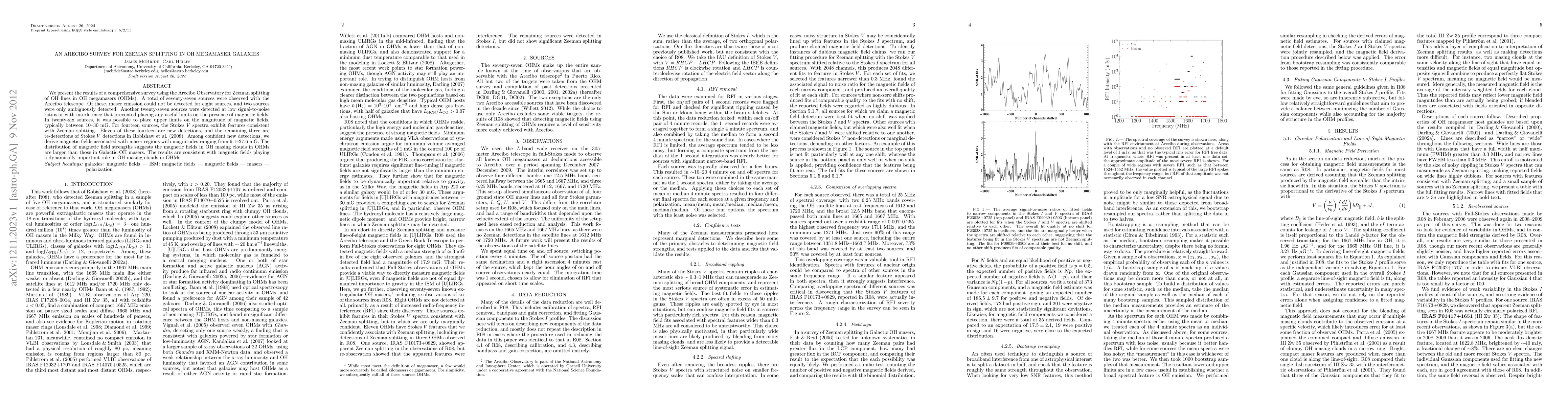 A comprehensive survey of OH megamasers using Arecibo found magnetic fields in 11 new detections, with field strengths ranging from 6.1-27.6 mG, suggesting a key role for magnetism in OH masing clouds.