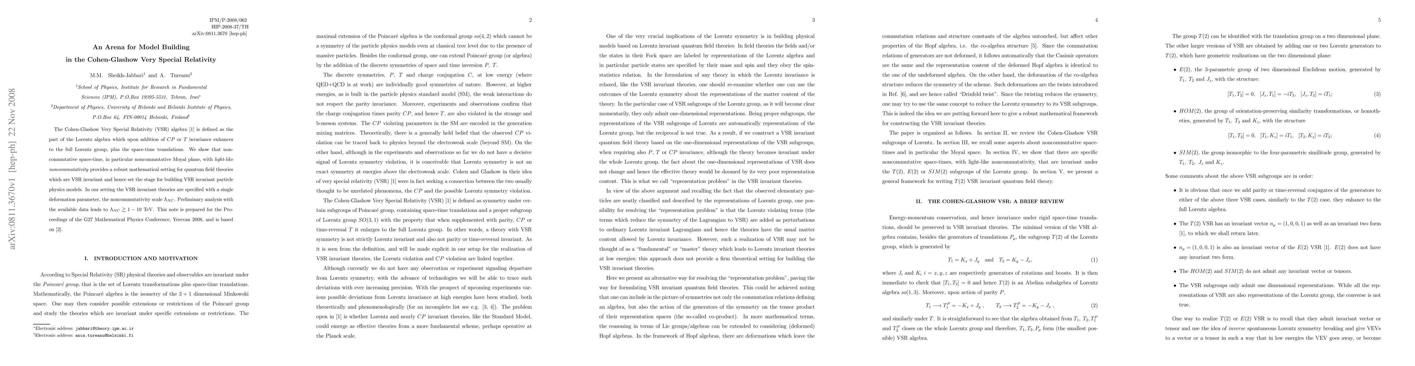 The Cohen-Glashow Very Special Relativity (VSR) algebra [arXiv:hep-ph/0601236] is defined as the part of the Lorentz algebra which upon addition of CP or T invariance enhances to the full Lorentz group, plus the space-time translations. We show that noncommutative space-time, in particular noncommutative Moyal plane, with light-like noncommutativity provides a robust mathematical setting for quantum field theories which are VSR invariant and hence set the stage for building VSR invariant particle physics models. In our setting the VSR invariant theories are specified with a single deformation parameter, the noncommutativity scale \Lambda_{NC}. Preliminary analysis with the available data leads to \Lambda_{NC}\gtrsim 1-10 TeV. This note is prepared for the Proceedings of the G27 Mathematical Physics Conference, Yerevan 2008, and is based on arXiv:0806.3699[hep-th].
