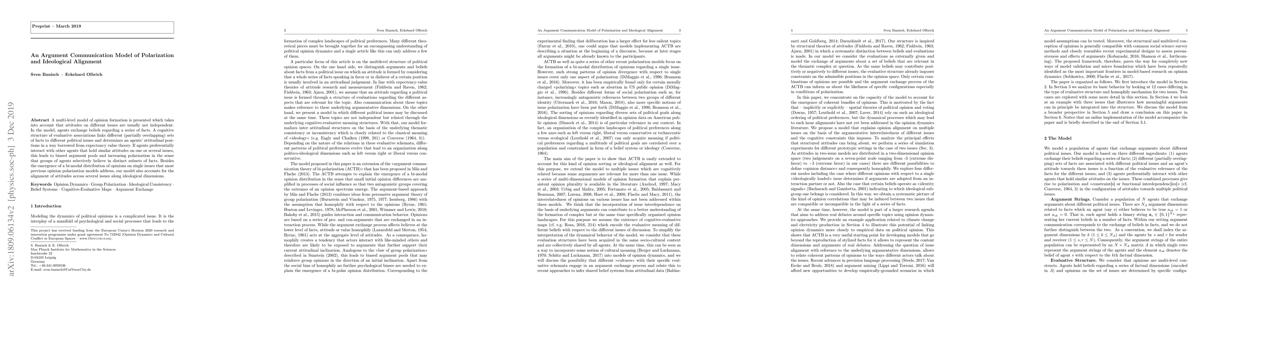 A multi-level model of opinion formation is presented which takes into account that attitudes on different issues are usually not independent. In the model, agents exchange beliefs regarding a series of facts. A cognitive structure of evaluative associations links different (partially overlapping) sets of facts to different political issues and determines an agents' attitudinal positions in a way borrowed from expectancy value theory. If agents preferentially interact with other agents that hold similar attitudes on one or several issues, this leads to biased argument pools and polarization in the sense that groups of agents selectively belief in distinct subsets of facts. Besides the emergence of a bi-modal distribution of opinions on single issues that most previous opinion polarization models address, our model also accounts for the alignment of attitudes across several issues along ideological dimensions.