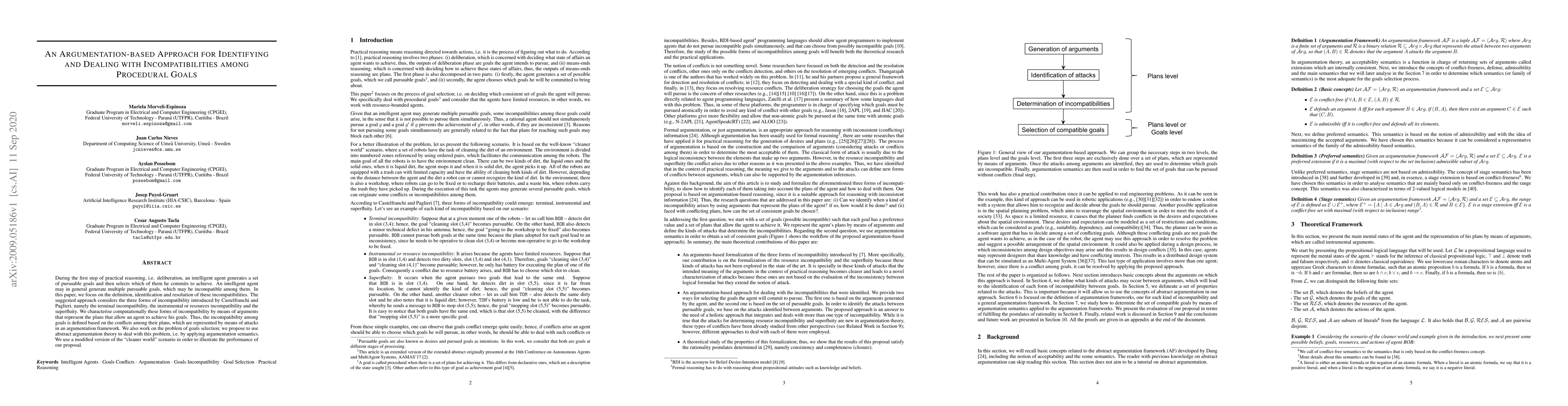 This paper proposes an argumentation-based approach for identifying and resolving incompatibilities among procedural goals generated by an intelligent agent during deliberation. It characterizes different forms of incompatibility using argumentation frameworks and employs abstract argumentation theory to select feasible goals.