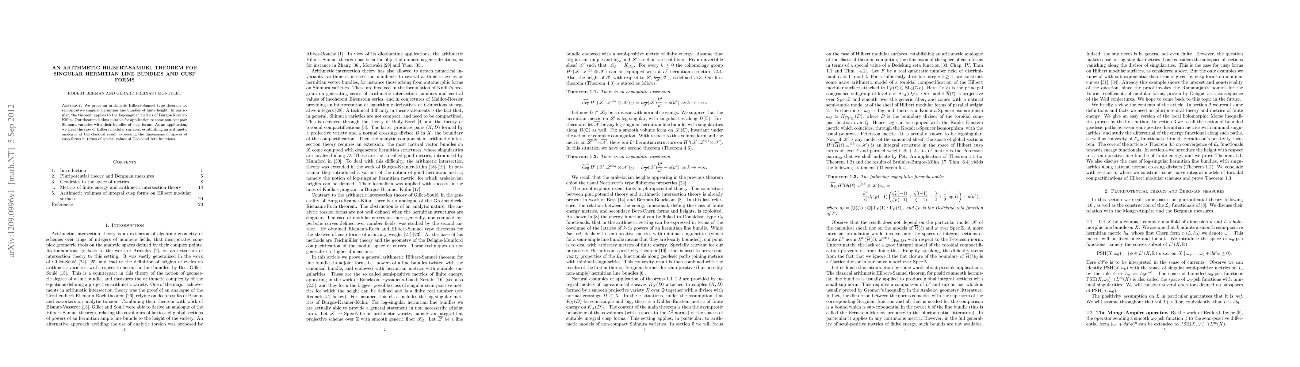 This paper proves an arithmetic Hilbert-Samuel theorem for semi-positive singular hermitian line bundles of finite height, applicable to log-singular metrics. It also establishes an arithmetic analogue for Hilbert modular surfaces, relating dimensions of cusp forms to special values of Dedekind zeta functions.