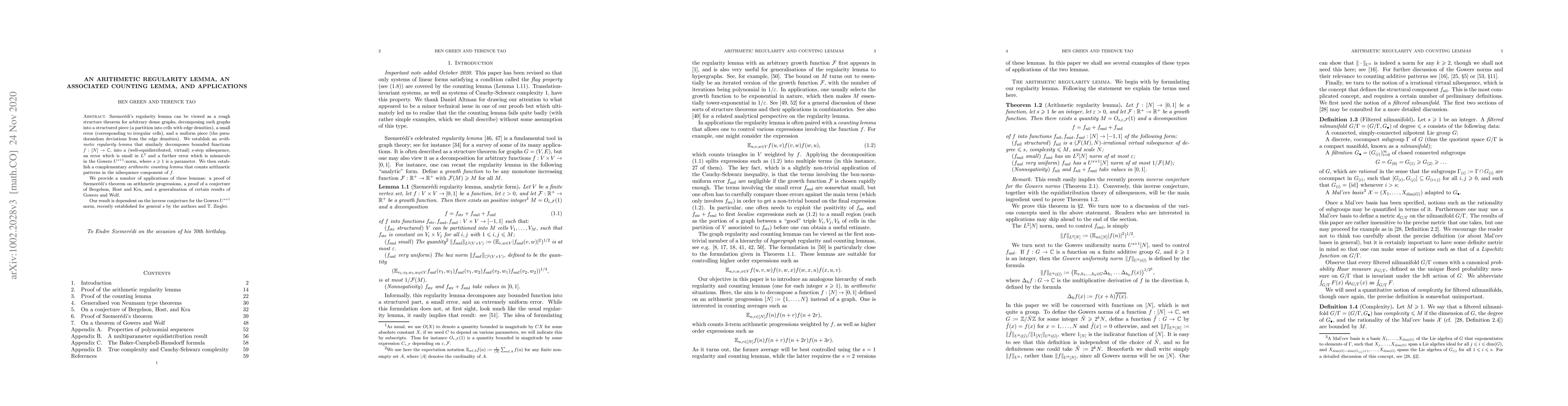 This paper establishes an arithmetic regularity lemma and an associated counting lemma for bounded functions, decomposing them into a structured nilsequence, a small L^2 error, and a tiny Gowers U^{s+1}-norm error. It applies these results to prove Szemeredi's theorem on arithmetic progressions, a conjecture by Bergelson, Host, and Kra, and generalizes findings by Gowers and Wolf. The revised version focuses on systems with the flag property for the counting lemma.