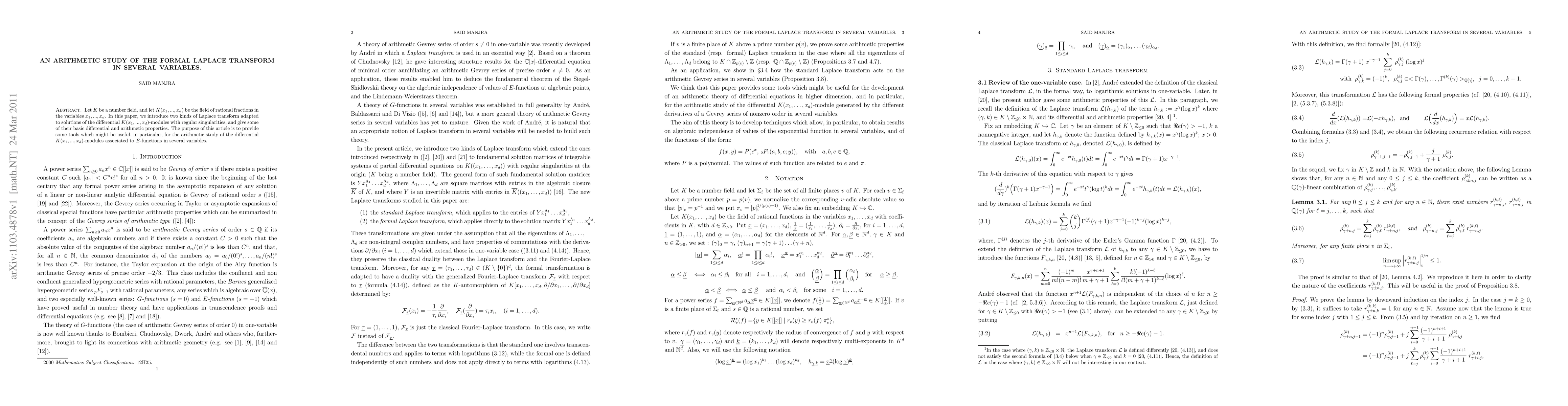 Researchers introduce two Laplace transforms for differential modules with regular singularities in several variables, aiming to aid arithmetic studies of associated E-functions.