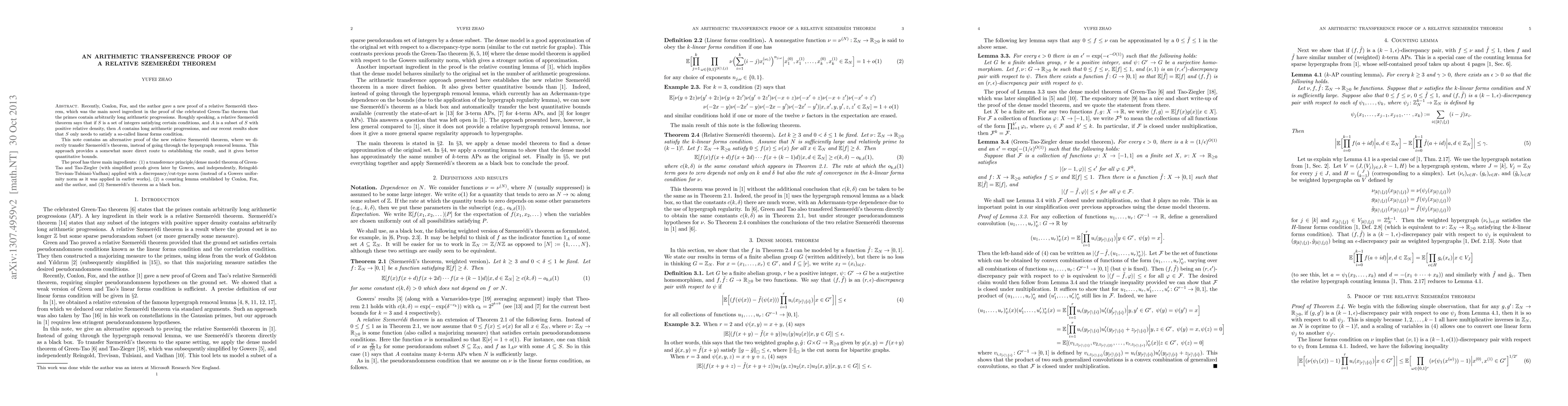 This paper presents an alternative proof of a new relative Szemer\'edi theorem, using a direct transference method instead of the hypergraph removal lemma, which yields better quantitative bounds. The proof leverages a transference principle, a counting lemma, and Szemer\'edi's theorem.