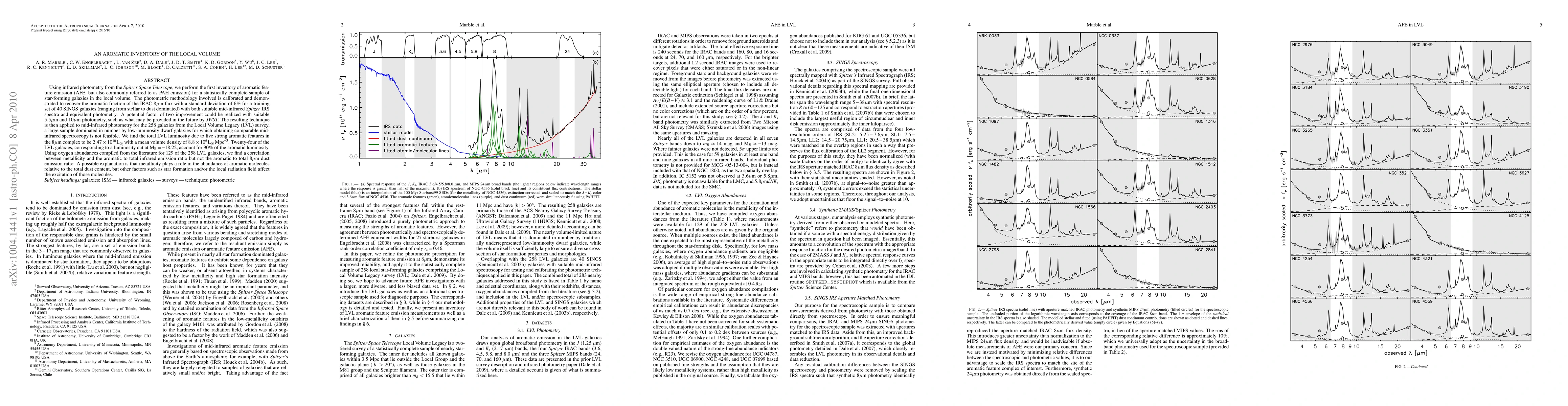 This study uses infrared photometry from the Spitzer Space Telescope to inventory aromatic feature emission (PAH) in a sample of local star-forming galaxies. The technique correlates metallicity with aromatic luminosity, suggesting that metallicity influences aromatic molecule abundance relative to dust content, though other factors may affect their excitation.