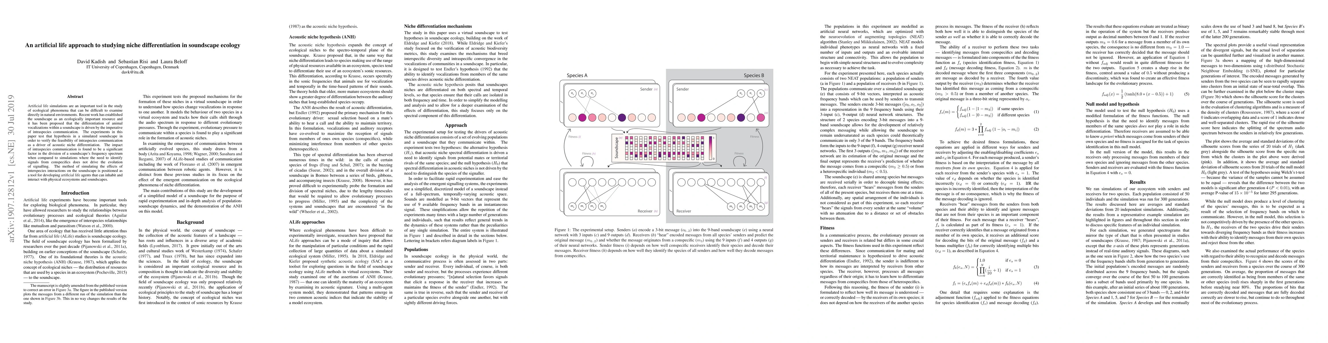 This study uses artificial life simulations to explore how animals differentiate their sounds within a shared environment, showing that communication needs drive acoustic specialization. The approach provides a new way to understand and develop interactions between artificial agents and real ecosystems.