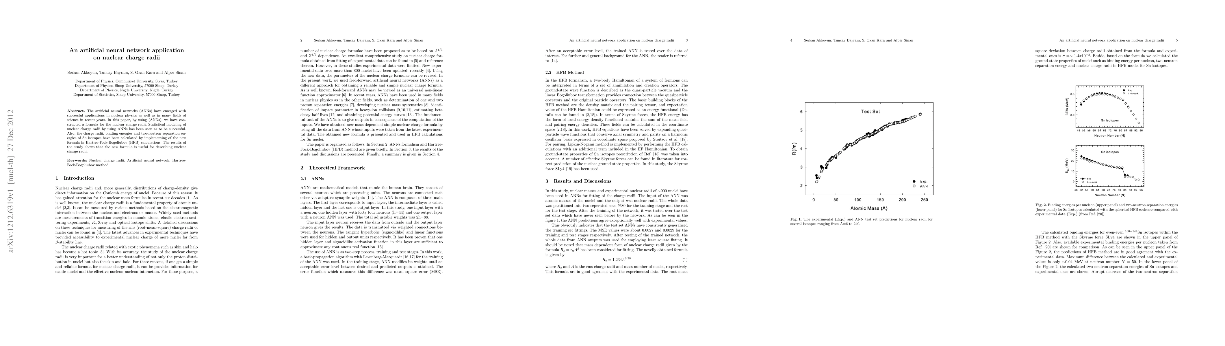 This paper utilizes artificial neural networks (ANNs) to develop a formula for nuclear charge radii, demonstrating successful statistical modeling. The new formula, implemented in Hartree-Fock-Bogoliubov calculations, accurately predicts the charge radii, binding energies, and two-neutron separation energies of Sn isotopes.
